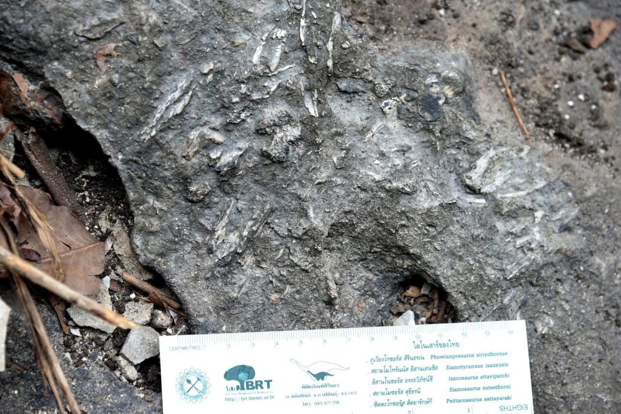 “กลุ่มฟอสซิลกระดูกสัตว์ที่พบในครั้งนี้ มีลักษณะการแตกหักเป็นชิ้น ๆ สันนิษฐานว่า เป็นกลุ่มชิ้นกระดูกที่ถูกสัตว์ล่าเนื้อกัดกินเป็นอาหาร เนื่องจากบริเวณนี้มีถ้ำอยู่ใกล้เคียง เมื่อสัตว์นักล่าทำการล่าเหยื่อเป็นอาหาร ก็มีความเป็นไปได้ในการที่จะลากเหยื่อมากินบริเวณถ้ำ แล้วทิ้งกระดูกไว้ เมื่อระยะเวลาผ่านไปเป็นพันปี หมื่นปี แสนปี น้ำฝนที่ชะล้างจากภูเขาหินปูน ซึ่งมีสารละลายแคลเซียมคาร์บอเนตที่อยู่ในหินปูน ได้ตกตะกอนเคลือบชิ้นส่วนกระดูกกลุ่มนี้ไว้จนเป็นเนื้อเดียวกับภูเขาหินปูน ลักษณะเดียวกับหินงอก หินย้อยที่เกิดขึ้นจากธรรมชาติ” นางสาวพรรณิภา กล่าว