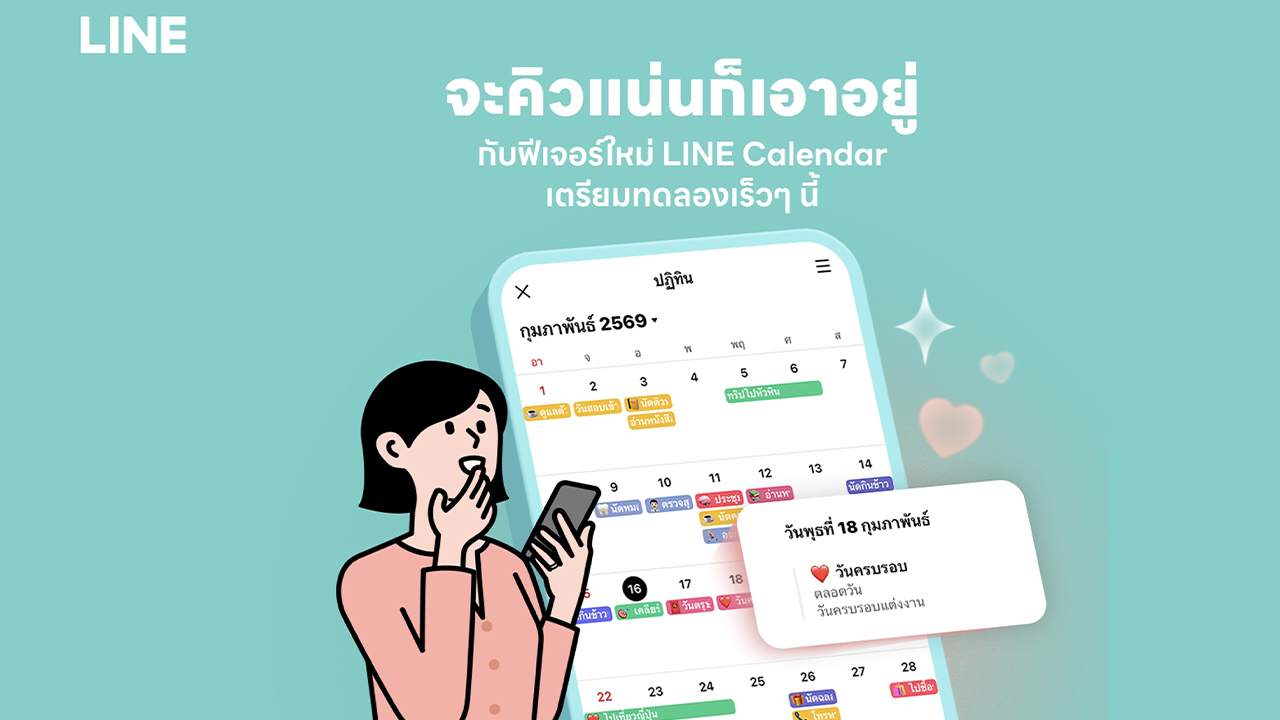 หนึ่งในพฤติกรรมที่ผู้ใช้จำนวนมากคุ้นเคย คือ การนัดหมายกันยาวในแชท แต่สุดท้ายลืมบันทึกลงปฏิทิน หรือมีตารางกระจัดกระจายอยู่หลายแอป LINE จึงพัฒนาฟีเจอร์ ‘ปฏิทิน’ บน LINE เพื่อให้ทุกการนัดหมาย “ครบจบในที่เดียว” ได้ ไม่ว่าจะเป็นการนัดเพื่อนหรือเรื่องสำคัญ สามารถสร้างได้ง่าย ๆ บน LINE โดยไม่ต้องสลับไปใช้งานแพลตฟอร์มอื่น