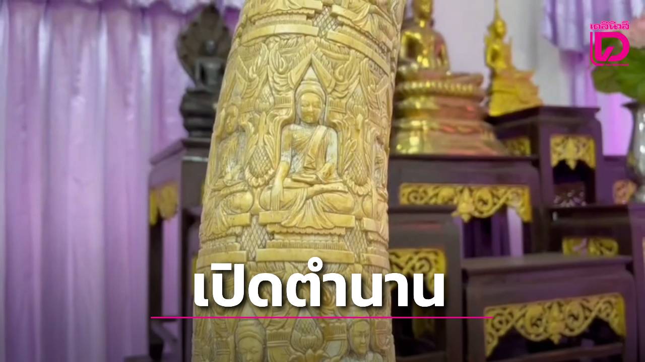 นายสุรพงษ์ กองจันทึก นักมานุษยวิทยา ผู้เชี่ยวชาญด้านกลุ่มชาติพันธุ์ กล่าวว่า งาช้างคู่นี้เป็นงาช้างขนาดใหญ่ มีการแกะสลักเป็นพระพุทธรูปนั่งปางมารวิชัยโดยรอบ และแกะเป็นพระพุทธรูปยืนที่โคนงาช้าง เดิมเป็นของ “หน่องโก่วเปี๊ยว” ซึ่งเป็นบุตรสาวของพระสุวรรณคีรี เจ้าเมืองสังขละบุรี ได้นำไปถวายให้แก่หัวหน้าฤาษีกลุ่มตะละโคงที่บ้านเลตองคุ ด้วยความเคารพศรัทธา