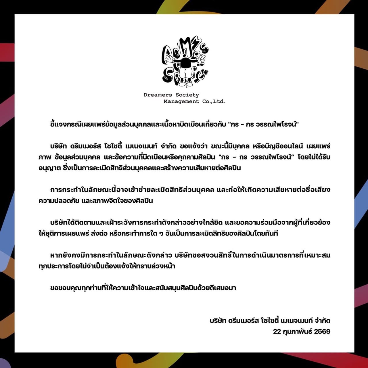 ถูกสนใจหนักมากสำหรับประเด็นที่ “กร-กร วรรณไพโรจน์” หรือ “กร PROXIE” ได้ถูกคุกคามจากบุคคลและบัญชีออนไลน์ โดยการเผยแพร่ภาพ ข้อมูลส่วนบุคคล ทั้งยังบิดเบือนข้อความ เนื้อหา จนเกิดความเสียหาย ก่อนที่ต้นสังกัดจะออกมาประกาศว่าได้มีการเฝ้าระวังการกระทำดังกล่าว ซึ่งทำให้ศิลปินรู้สึกไม่ปลอดภัย ไปแล้ว ท่ามกลางแฟนๆที่ออกมาให้กำลังใจกรและวอนให้ค่ายดูแลศิลปินแบบจริงจัง ตามที่เสนอข่าวไปแล้วนั้น