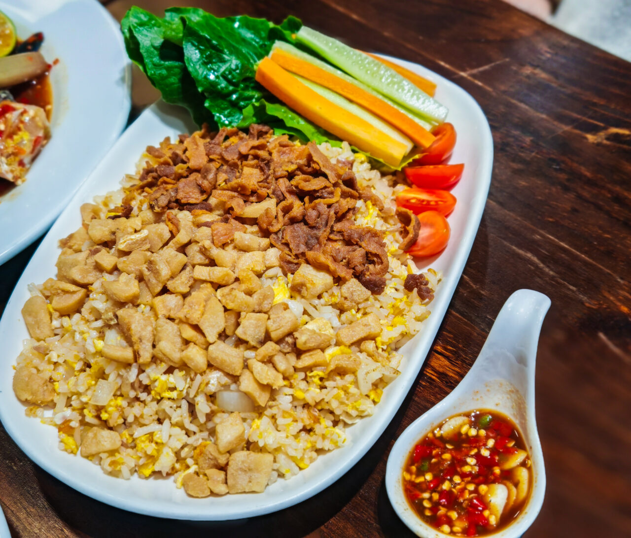 - ข้าวผัดเบคอนกากหมู (250.-) : สายคาร์ปต้องโดน ข้าวนิ่มๆ กินง่าย แต่ไม่แฉะนะ ผัดมารสชาติเบาๆ หอมกลิ่นกระทะ โปะหน้าด้วยกากหมู และเบคอนรมควันทอดกรอบ ใครสายข้าวนิ่มแนวข้าวหอมมะลิชอบแน่นอน