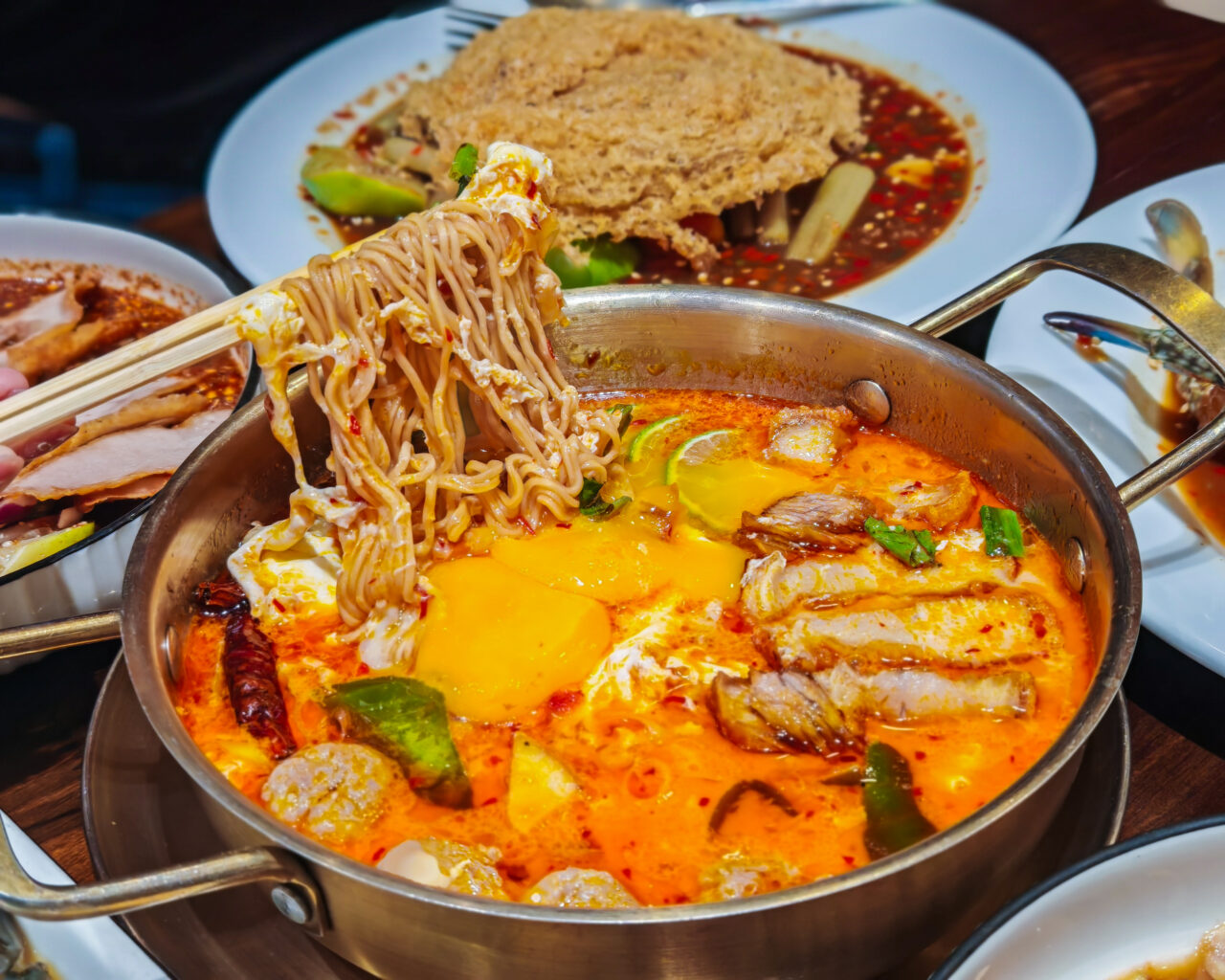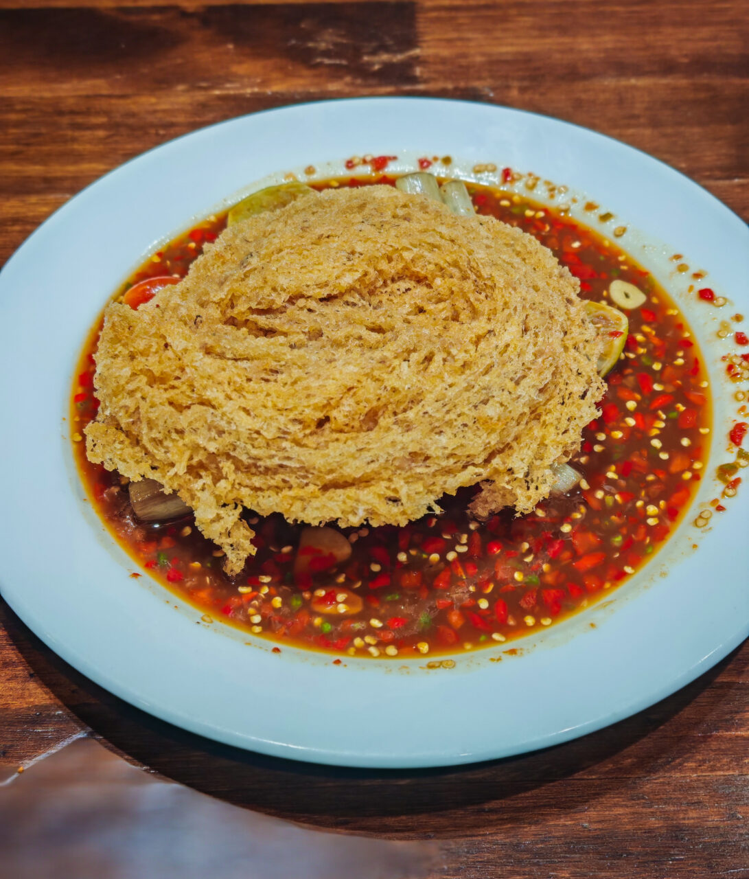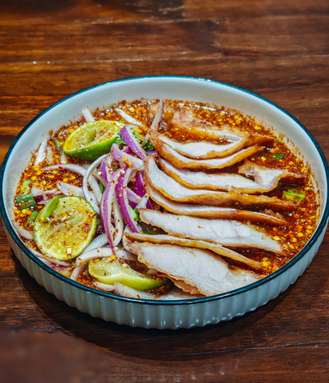 - ไวไวต้มยำหมูนุ่มหมูกรอบ (190.-) : น้ำซุปต้มสมุนไพรที่ใช้เวลาเคี่ยวนานหลายชั่วโมง ปรุงรสต้มยำจัดจ้าน เสิร์ฟมาในหม้อสีทองฟีลคล้ายๆ รามยอนเกาหลี เป็นเมนูเพิ่มคาร์ปที่ดีงาม สำหรับคนที่ไม่อยากสั่งข้าวเหนียว รสชาตินัวๆ นวลๆ เพราะไข่ที่ใส่มาด้วย เส้นไวไวหนึบสู้ฟัน ต้มยำไม่ได้เผ็ดหรือเค็มเกินไป รสชาติกลมกล่อมกำลังดี