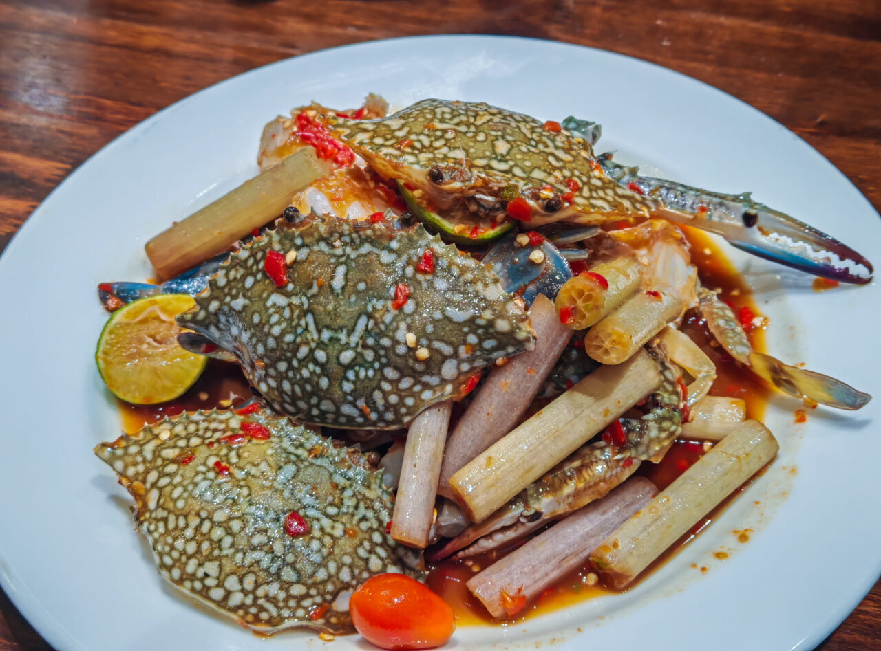 - ยำปูม้าสด (270.-) : เมนูเด็ดสำหรับสาวที่รักปูม้า เพราะปูม้ามากันเป็นหมู่คณะ ใครที่สั่ง ยำอีเปีย มหาสมุทร จะมีปูม้ามาให้ 2 ตัว ถ้ายังไม่สาแก่ใจ สั่งเมนูนี้มาเพิ่ม รับรองว่าฟินตัวแตกแน่นอน ปีนี้ปีม้าด้วย ก็ต้องกินปูม้า!!