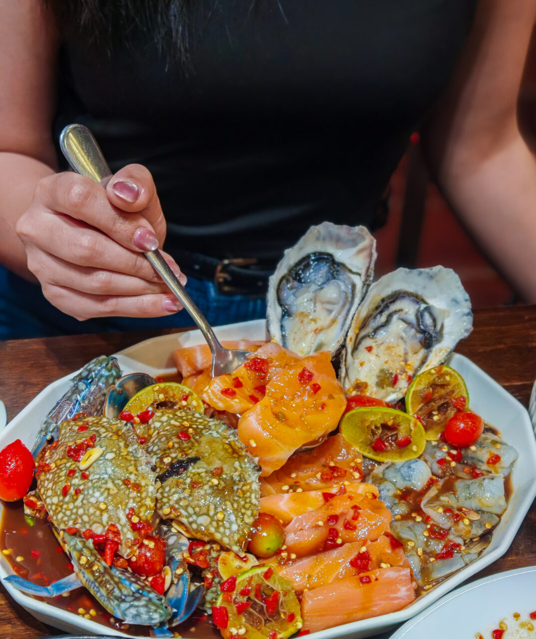 นอกเหนือจากคอนเซปต์ร้านที่โดนใจ รสชาติอาหาร “เผ็ดหวาน” ที่ถูกปากแล้ว วัตถุดิบของ “อีเปีย” ก็ต้องยอมรับว่า ของเค้าดีย์!! จริง ๆ สดใหม่มาก ไม่ว่าจะเป็น” ปลาแซลมอนสด” ที่ส่งตรงจากนอร์เวย์, “หอยนางรม” จากเกาหลี, “ปูม้า” สดจากจังหวัดระนอง เนื้อแน่น หวานธรรมชาติ ตลอดจน “ผักปลอดสารพิษ” จากหลากหลายพื้นที่ของไทย