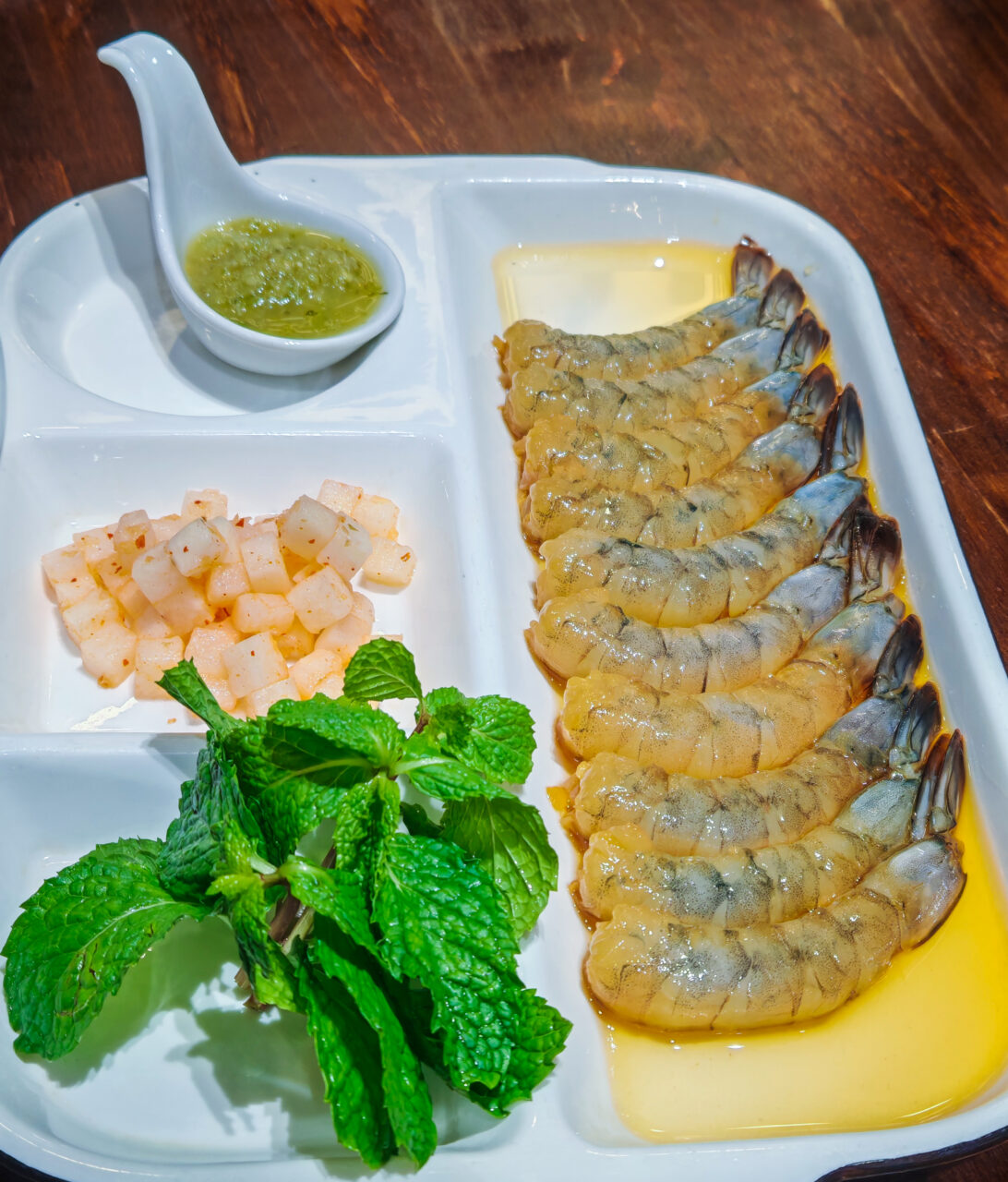 - กุ้งแก้วแกวดอง (350.-) : อีกหนึ่งเมนูยอดนิยมของทางร้านที่สายดองห้ามพลาด!! มีความเป็นลูกครึ่งของกุ้งแช่น้ำปลา และกุ้งดองซีอิ้ว เสิร์ฟคู่มากับมันแกวดองกิมจิ และน้ำจิ้มซีฟู้ดรสเด็ด เลิฟเวอร์กุ้งต้องโดนจริงๆ “พี่เช” กดไม่ยั้ง เพราะเลิฟกุ้งสุดๆ อยู่แล้ว