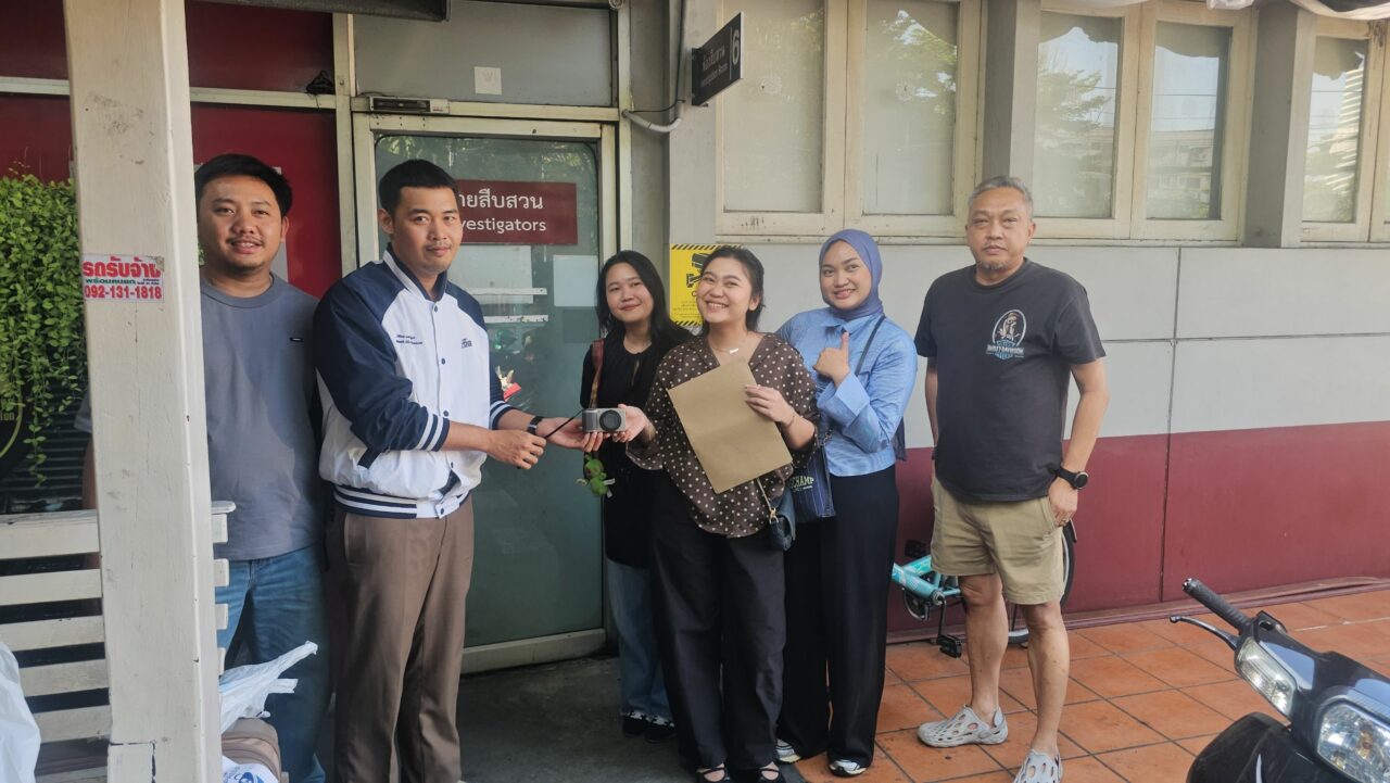 โดย น.ส.ลีฮันนา ได้ทรัพย์สินคืน รู้สึกประทับใจพร้อมกล่าวขอบคุณและชื่นชมเจ้าหน้าที่ตำรวจฝ่ายสืบสวน สน.ห้วยขวาง พร้อมทั้งขอถ่ายภาพเป็นที่ระลึก ที่ช่วยติดตามทรัพย์สินคืนให้ในครั้งนี้ด้วย.