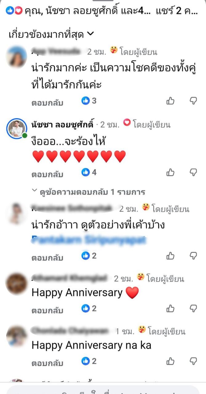 งานนี้แฟน ๆ รวมถึงเพื่อนในวงการต่างเข้ามาคอมเมนต์ร่วมแสดงความยินดีกันอย่างคึกคัก หลายคนแซวตรงกันว่า “บ้านนี้หวานไม่พักจริง ๆ” เพราะแม้จะผ่านไป 10 ปีเต็ม แต่ความรักของทั้งคู่ก็ยังดูสดใสไม่เปลี่ยน บางคอมเมนต์บอกว่า “น่ารักมาก เป็นความโชคดีของทั้งคู่ที่ได้มาเจอกันและรักกัน” ขณะที่แฟนคลับอีกจำนวนไม่น้อยก็ชื่นชม ครูก้อย ว่าเป็นผู้หญิงที่ทั้งสวย เก่ง และฉลาดครบเครื่อง พร้อมแซวขำ ๆ ว่า “วาสนาพี่เจมส์จริง ๆ ที่ได้แฟนทั้งสวยและดีแบบนี้”เรียกว่าเป็นอีกหนึ่งคู่รักคนดังที่ทำให้หลายคนยิ้มตาม และยกให้เป็นตัวอย่างของชีวิตคู่ที่อบอุ่นและน่ารักเสมอมา