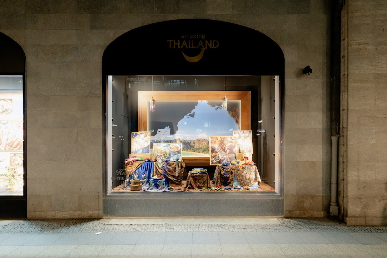 และโชว์เคสในตู้โชว์สินค้า (Window Displays) จำนวน 10 ตู้ การจัดแสดงที่ได้รับการออกแบบมาอย่างพิถีพิถัน เพื่อนำเสนอความมั่งคั่งของมรดกทางวัฒนธรรม ศิลปะ และอาหารไทย รวมไปถึงการจัดกิจกรรมพิเศษโชว์การแสดงทางวัฒนธรรมและสาธิตอาหารไทย เพื่อเปิดโอกาสให้นักท่องเที่ยวคุณภาพระดับ Premium & Luxury (พรีเมียมและลักชัวรี) ได้สัมผัสความเป็นไทยอย่างใกล้ชิด สร้างแรงบันดาลใจต่อยอดสู่การเดินทางจริงในประเทศไทยตั้งแต่วันที่ 2-14 มีนาคม 2026 ณ ห้างสรรพสินค้า KaDeWe (คาเดเว) กรุงเบอร์ลิน สหพันธ์สาธารณรัฐเยอรมนี