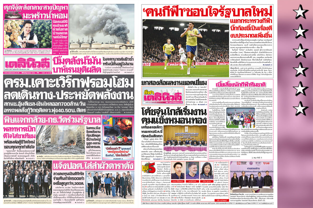 หนังสือพิมพ์เดลินิวส์ ฉบับวันอังคารที่ 10 มี.ค. 2569 (กรอบ 6 ดาว)