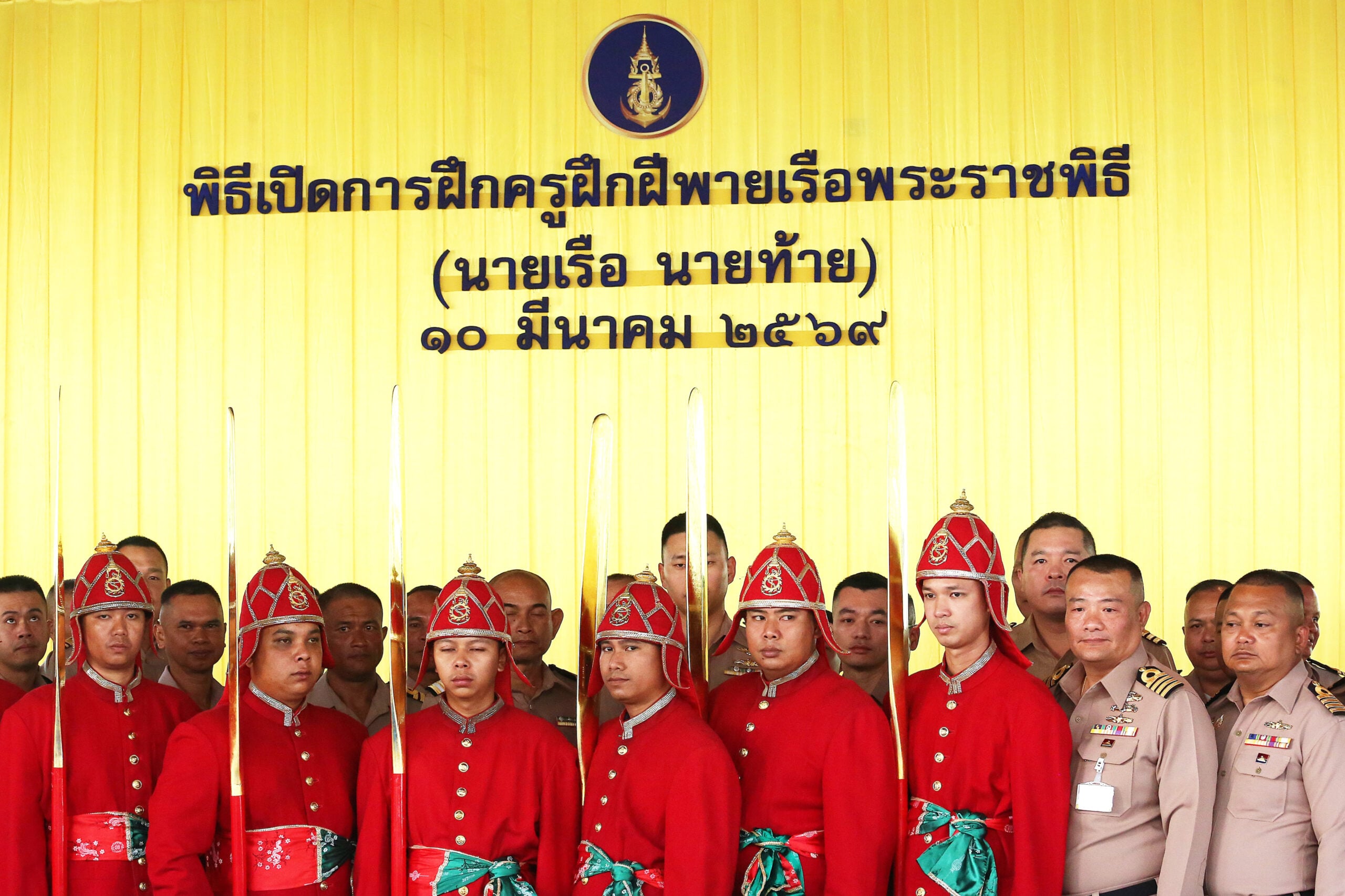 เมื่อวันที่ 10 มี.ค. เวลา 09.30 น. พล.ร.อ.ไพโรจน์ เฟื่องจันทร์ ผู้บัญชาการทหารเรือ เป็นประธานในพิธีเปิดการอบรมครูฝึกฝีพายเรือพระราชพิธี ในการจัดขบวนพยุหยาตราทางชลมารคในการเสด็จพระราชดำเนินไปทรงบำเพ็ญพระราชกุศลถวายผ้าพระกฐิน พุทธศักราช 2569 เนื่องในโอกาสพระราชพิธีมหามงคลเฉลิมพระชนมพรรษา 4 รอบ สมเด็จพระนางเจ้าฯ พระบรมราชินี 3 มิถุนายน 2569 ณ แผนกเรือราชพิธี กองเรือเล็ก กรมการขนส่งทหารเรือ