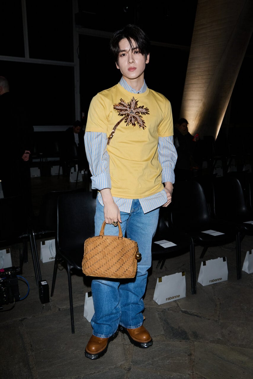 เปิดประเดิมวันแรกด้วยโชว์จากแบรนด์ “Rabanne” ซึ่งยอร์ชปรากฏตัวในลุคที่ดูสะอาดตาแต่แฝงด้วยความประณีต เขาเลือกสวมเสื้อสเวตเตอร์สีเหลืองอ่อนที่มีดีเทลการปักลายอย่างละเอียดทั่วทั้งตัว สีเหลืองนวลช่วยขับผิวของยอร์ชให้ดูสว่างและโดดเด่นท่ามกลางแสงไฟยามค่ำคืนของปารีส ลุคนี้เป็นการผสมผสานระหว่างความนุ่มนวลและความเป็นโมเดิร์นได้อย่างลงตัว สลัดภาพไอดอลหนุ่มขี้เล่นมาเป็นชายหนุ่มที่ดูมีคลาสและน่าค้นหา