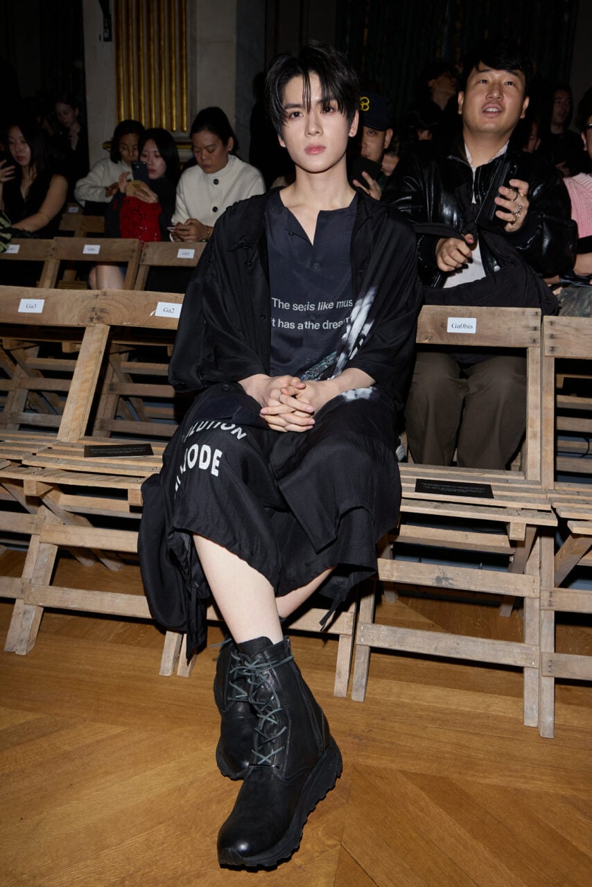 ปิดท้ายทริปปารีสอย่างสมศักดิ์ศรีด้วยการได้รับเชิญให้นั่งฟรอนต์โรว์ชมโชว์ของดีไซเนอร์ระดับตำนานอย่าง “Yohji Yamamoto” ซึ่งขึ้นชื่อเรื่องงานดีไซน์แนวอวองการ์ด (Avant-Garde) ยอร์ชมาในลุค All-Black เต็มตัว ตั้งแต่เสื้อคลุมโครงสร้างแปลกตาไปจนถึงกางเกงที่เน้นเลเยอร์ ซึ่งลุคนี้ยอร์ชพรีเซนต์ออกมาได้เท่และทรงพลังอย่างมาก เปลี่ยนจากหนุ่มดอกไม้ที่เราคุ้นเคยให้กลายเป็นนายแบบสุดมั่นใจที่ก้าวข้ามขีดจำกัดด้านแฟชั่นของตัวเองไปอีกขั้น