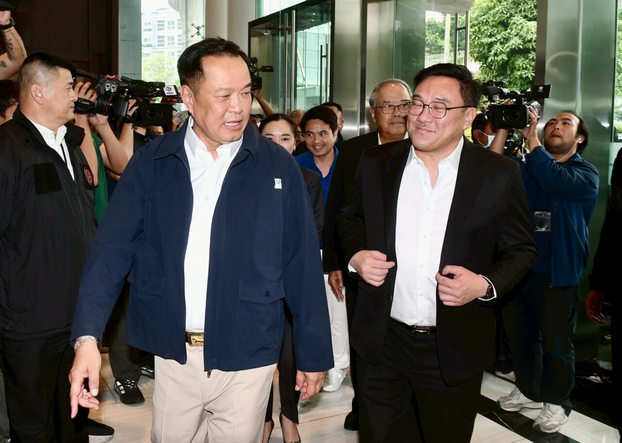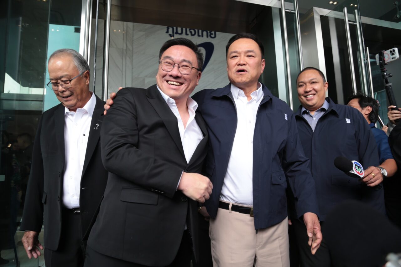 จากนั้นเวลา 14.15 น. นายจุลพันธ์ อมรวิวัฒน์ หัวพรรคเพื่อไทย พร้อมด้วยนายชูศักดิ์ ศิรินิล รองหัวหน้าพรรค น.ส.สุดาวรรณ หวังศุภกิจโกศล สส.บัญชีรายชื่อ เดินทางถึงที่ทำการพรรคภูมิใจไทย เพื่อพูดคุยเกี่ยวกับการทํางานร่วมกัน พร้อมทั้งส่งรายชื่อบุคคลที่จะมาดำรงตำแหน่ง รองประธานสภาผู้แทนราษฎร คนที่ 2 ในโควตาของพรรคเพื่อไทย โดยมีนายอนุทินยืนต้อนรับ พร้อมกล่าวแซว ทันทีที่นายจุลพันธ์มาถึง ว่า “อ้าวหนิม … หนูมารอหนิมตั้งนาน” ก่อนจะสวมกอดกัน ทําให้บรรยากาศการพบกันของแกนนำทั้งสองพรรคเป็นไปอย่างชื่นมื่น ก่อนจะขึ้นไปยังห้องประชุมเพื่อหารือเรื่องการทํางานร่วมกัน