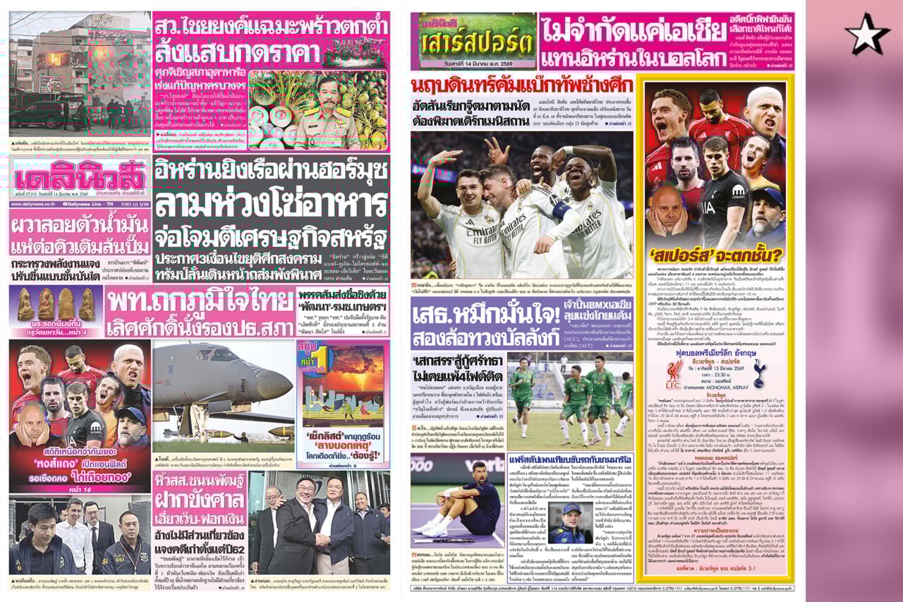 รายละเอียดทั้งหมดสามารถติดตามได้ในหนังสือพิมพ์ “เดลินิวส์” ฉบับวันที่ 13 มี.ค. และฉบับล่วงหน้า วันที่ 14 มี.ค.2569