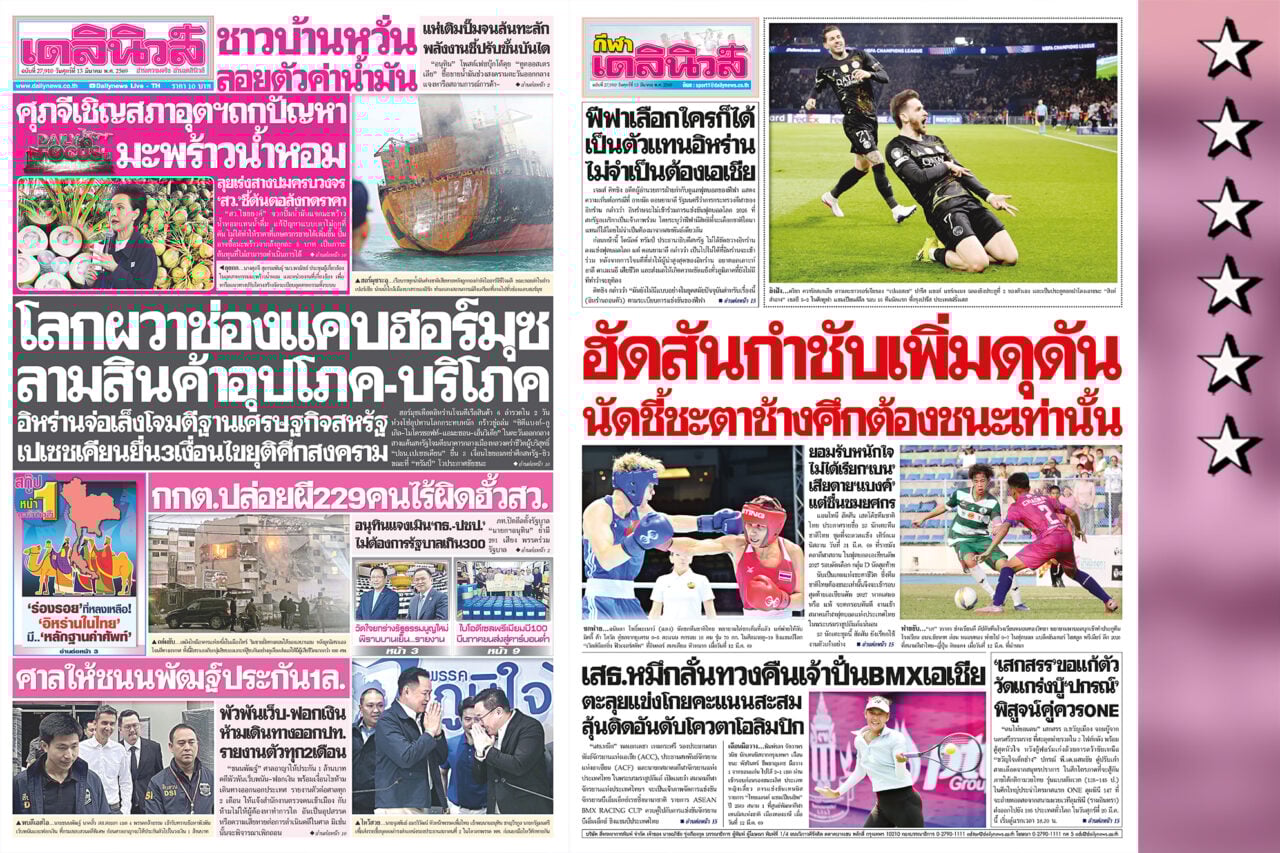 หนังสือพิมพ์เดลินิวส์ ฉบับวันศุกร์ที่ 13 มี.ค. 2569 (กรอบ 6 ดาว)