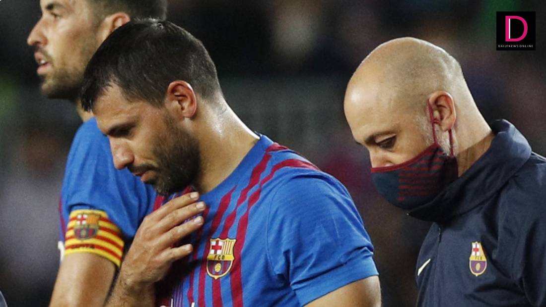 ดาวยิงชาวอาร์เจนตินา ซึ่งเพิ่งย้ายจาก แมนเชสเตอร์ ซิตี มาอยู่กับ “บาร์ซา” แบบไม่มีค่าตัว เมื่อช่วงซัมเมอร์ที่ผ่านมานั้น มีอาการเจ็บหน้าอกหายใจไม่สะดวก ในเกมลีกนัดที่ต้นสังกัดเสมอ อลาเบส 1-1 เมื่อช่วงปลายเดือนตุลาคมที่ผ่านมา จนต้องถูกเปลี่ยนตัวออกจากสนาม และถูกนำตัวส่งโรงพยาบาล ก่อนจะมีการตรวจพบว่าเจ้าตัวมีอาการหัวใจเต้นผิดจังหวะ โดยเบื้องต้นต้องพักอย่างน้อย 3 เดือน ขณะที่แพทย์ก็ให้คำแนะนำว่าเจ้าตัวควรเลิกเล่นฟุตบอลเสีย ส่งผลให้มีข่าวว่า “กุน” อาจตัดสินใจแขวนสตั๊ด