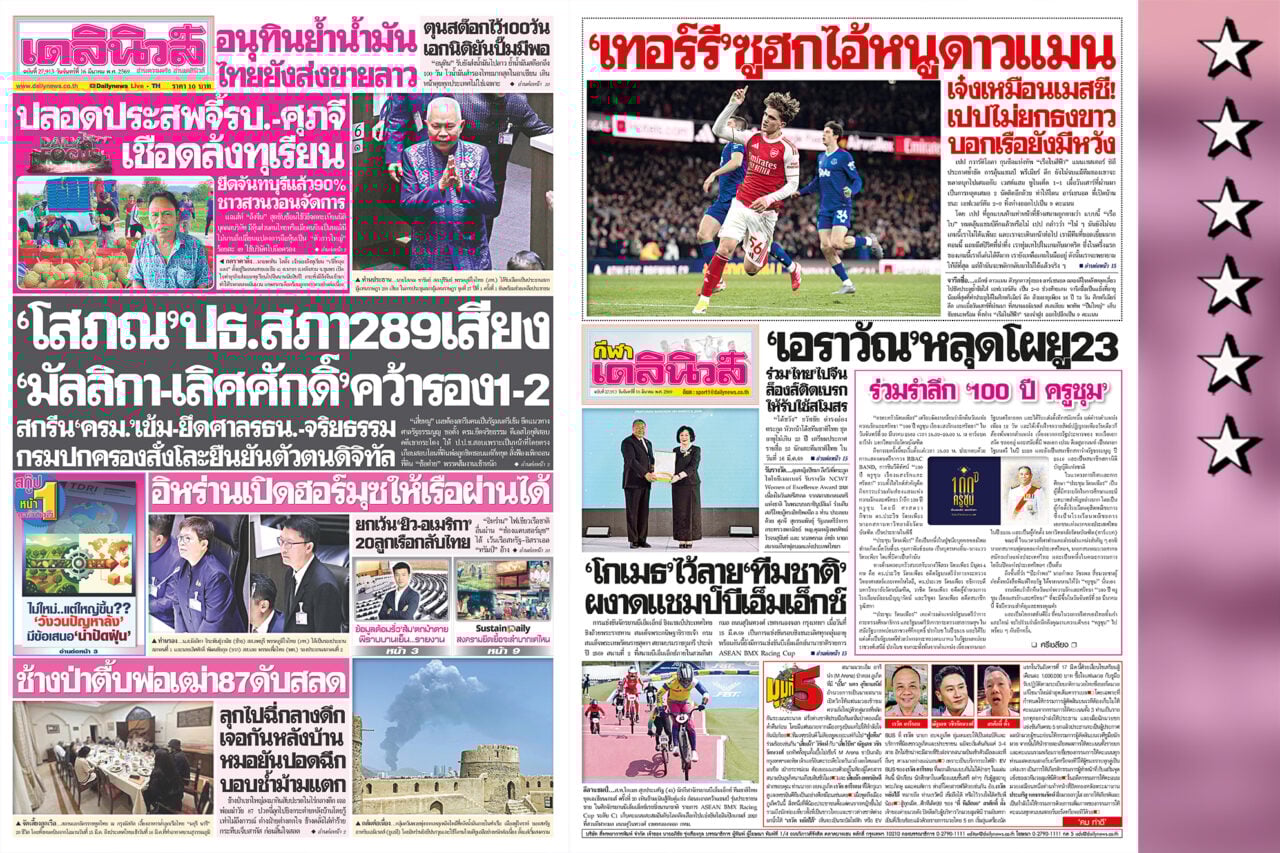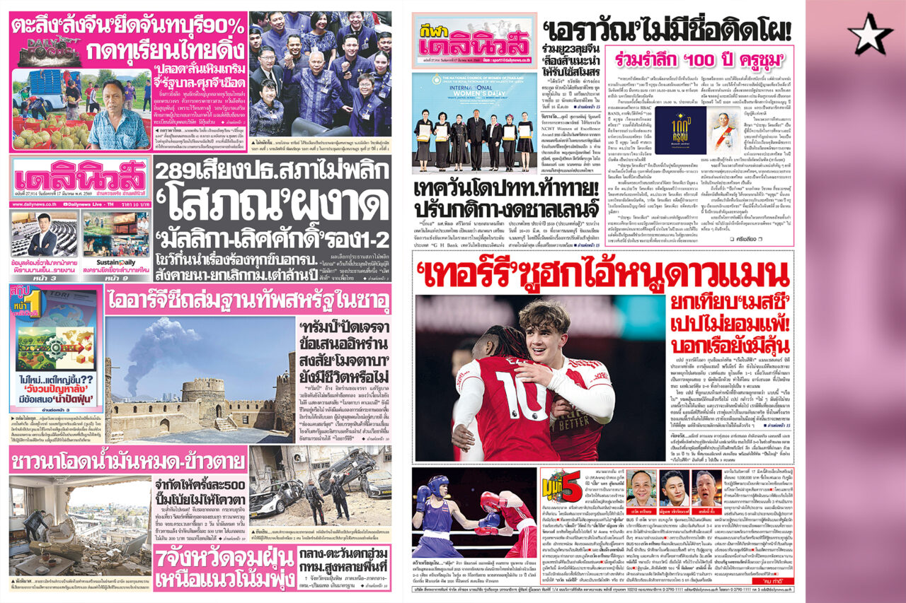 รายละเอียดทั้งหมดสามารถติดตามได้ในหนังสือพิมพ์ “เดลินิวส์” ฉบับวันที่ 16 มี.ค.2569 และฉบับล่วงหน้า วันที่ 17 มี.ค.2569