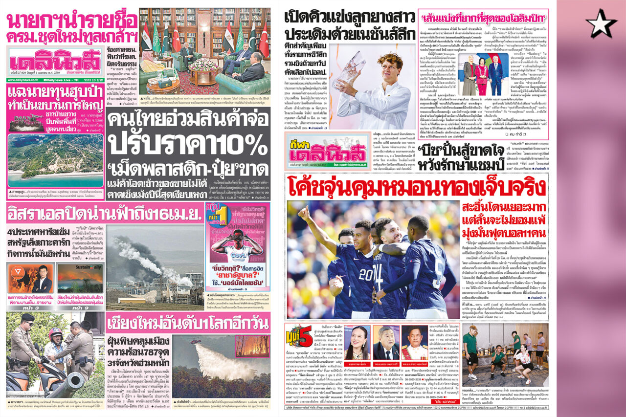 รายละเอียดทั้งหมดสามารถติดตามได้ในหนังสือพิมพ์ “เดลินิวส์” ฉบับวันที่ 31 มี.ค. และฉบับล่วงหน้า วันที่ 1 เม.ย.2569