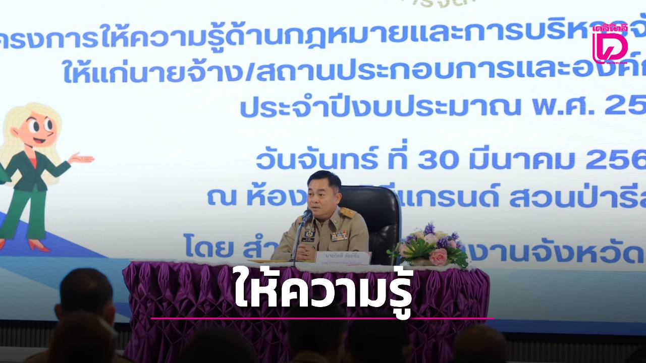 ณ สวนป่ารีสอร์ท ห้องประชุมลุมพินีแกรนด์ อ.เมืองสุรินทร์ จ.สุรินทร์ นายกิตติ สัตย์ซื่อ รองผวจ.สุรินทร์ เป็นประธานเปิดโครงการให้ความรู้ด้านกฎหมายและการบริหารจัดการแรงงานต่างด้าวแก่นายจ้างสถานประกอบการและองค์กรภาคีเครือข่าย ประจำปีงบประมาณ พ.ศ. 2569