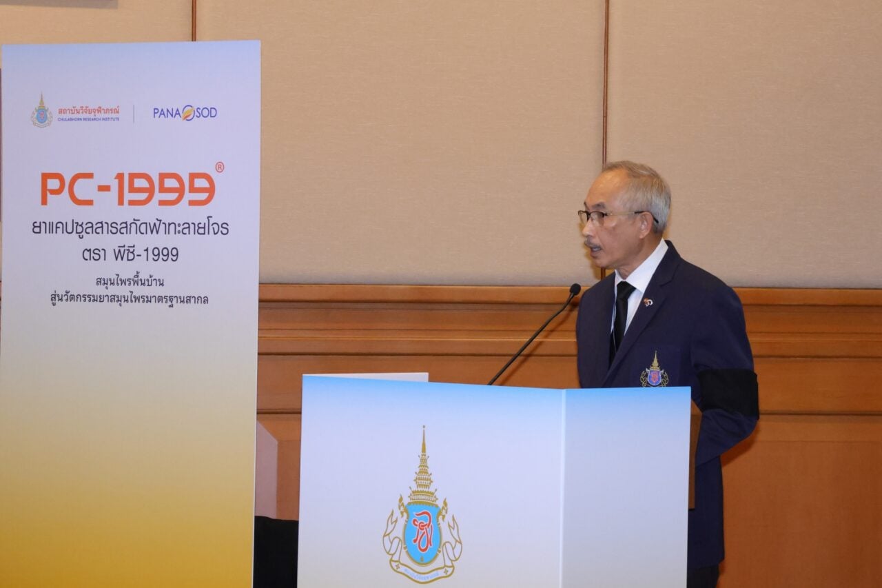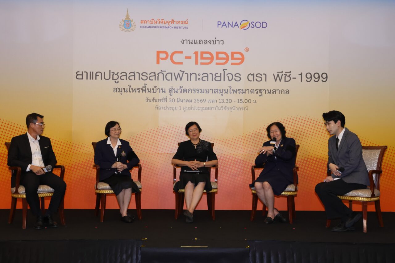 เมื่อวันที่ 30 มีนาคม 2569 เวลา 14.00 น. สถาบันวิจัยจุฬาภรณ์ ร่วมกับ บริษัท ปานะโอสถ จำกัด จัดงานแถลงข่าวเปิดตัวผลิตภัณฑ์ “ยาแคปซูลสารสกัดฟ้าทะลายโจร ตรา พีซี-1999” (PC-1999) นวัตกรรมจากสมุนไพรไทย เพื่อใช้บรรเทาอาการไข้ โดยมีรองศาสตราจารย์ ดร.ชูศักดิ์ ลิ่มสกุล รองประธานสถาบันวิจัยจุฬาภรณ์ ฝ่ายบริหารและอาคารสถานที่ เป็นประธานในพิธีฯ พร้อมด้วยคณะผู้บริหารสถาบันวิจัยจุฬาภรณ์ คณะผู้บริหารบริษัท ปานะโอสถ จำกัด เข้าร่วม ณ ห้องประชุม 1 ศูนย์ประชุมสถาบันวิจัยจุฬาภรณ์