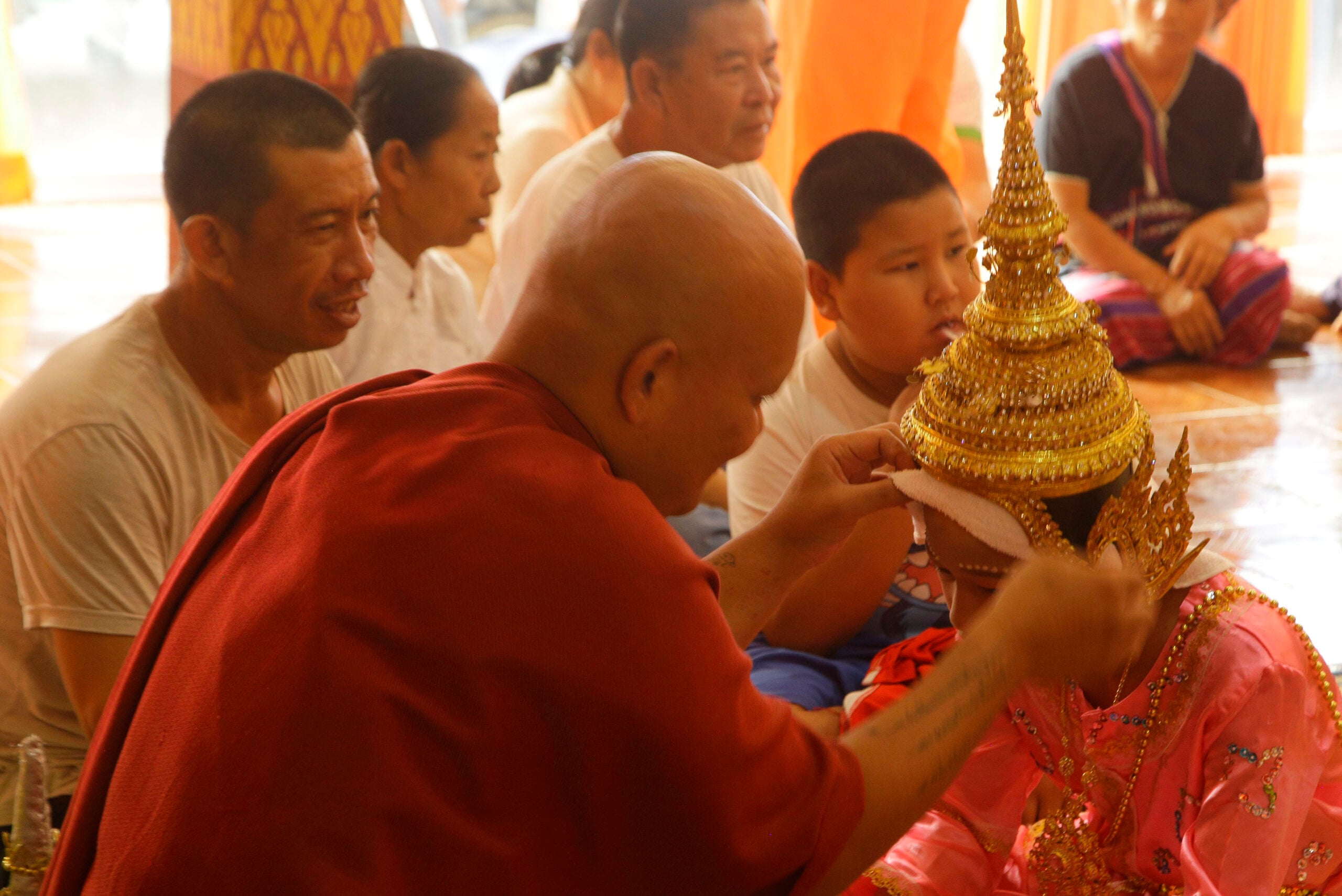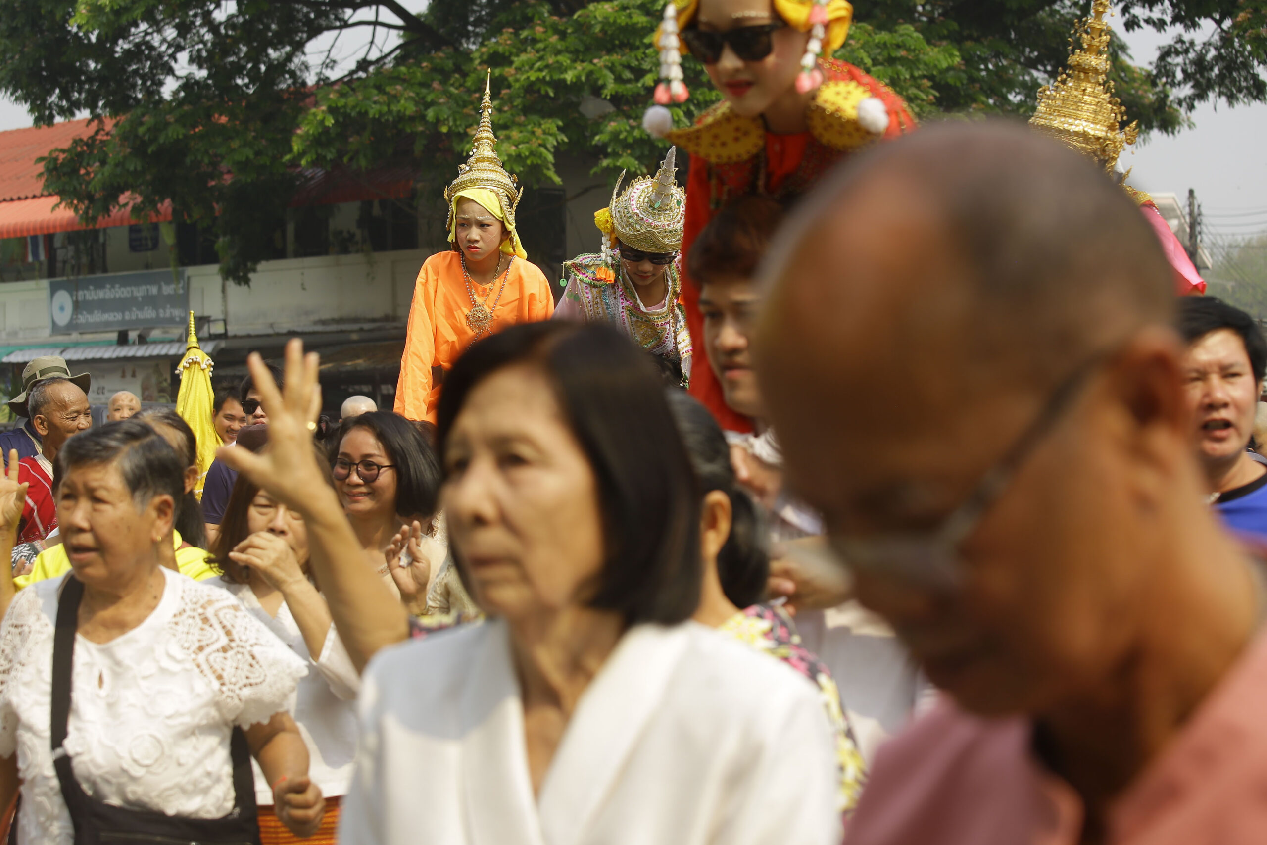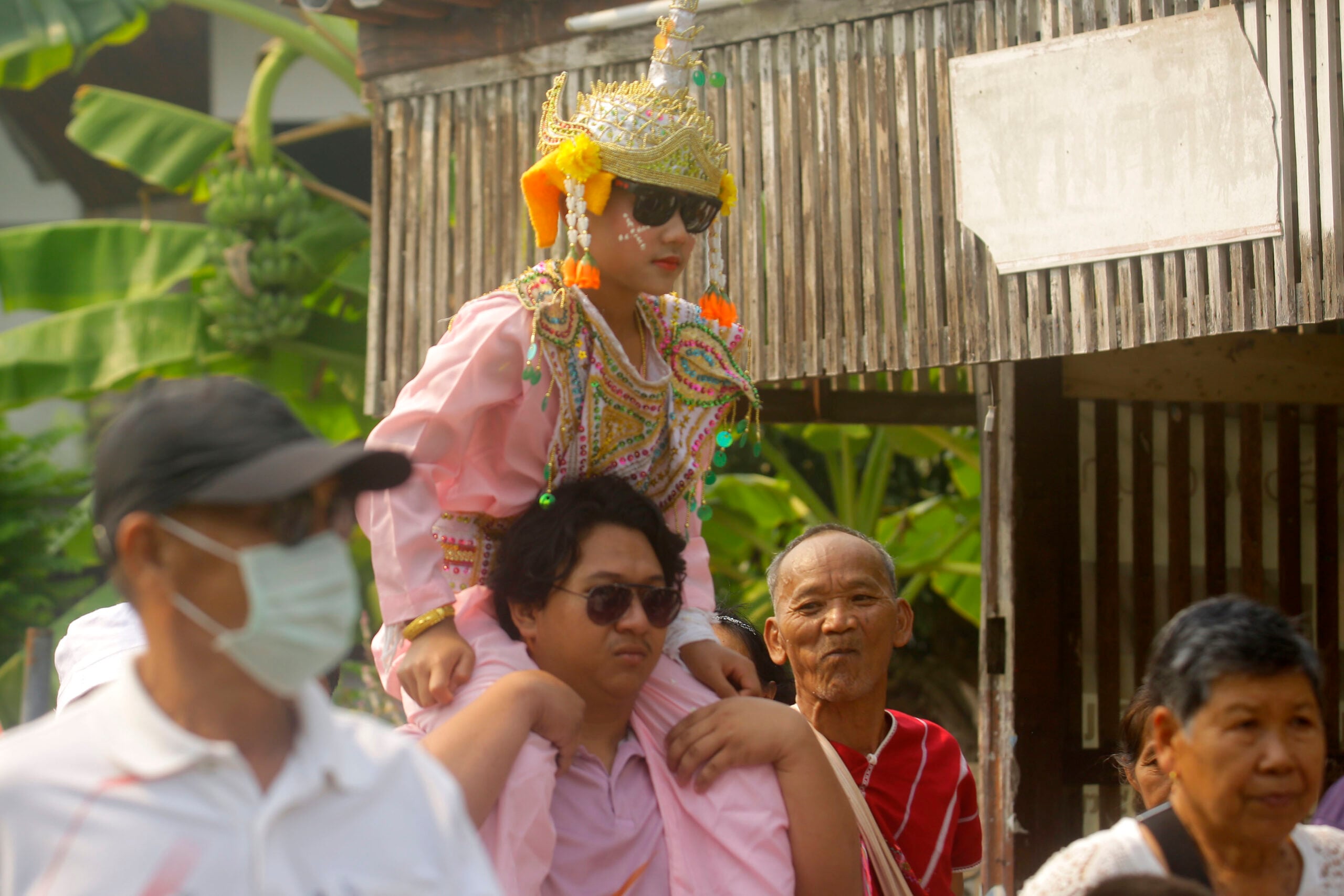 “บางปีก็ได้รับผ้าไตรพระราชทาน” พระครูปริยัติรังสรรค์ กล่าว และว่า สาเหตุของการแต่งหน้าตาก่อนจะบวชเป็นสามเณร ทางล้านนาเรียกว่า “ลูกแก้ว” ส่วนทาง จ.แม่ฮ่องสอน เรียกว่า “ปอยส่างลอง” ส่วนการแต่งกายเป็นเทวดาก็เหมือนกับตอนที่เจ้าชายสิทธัตถะเสด็จออกบวช ได้แต่งกายเต็มรูปแบบหรือเต็มยศออกบวช ก่อนจะเปลี่ยนมาใส่ผ้าขาวหรือผ้านาค และก็กลายเป็นประเพณีไปในที่สุด ขณะที่การแห่ก็เพื่อประชาสัมพันธ์ กระตุ้นให้เด็กๆ ได้เห็นพิธีกรรมนี้ และจะได้พากันมาบวช