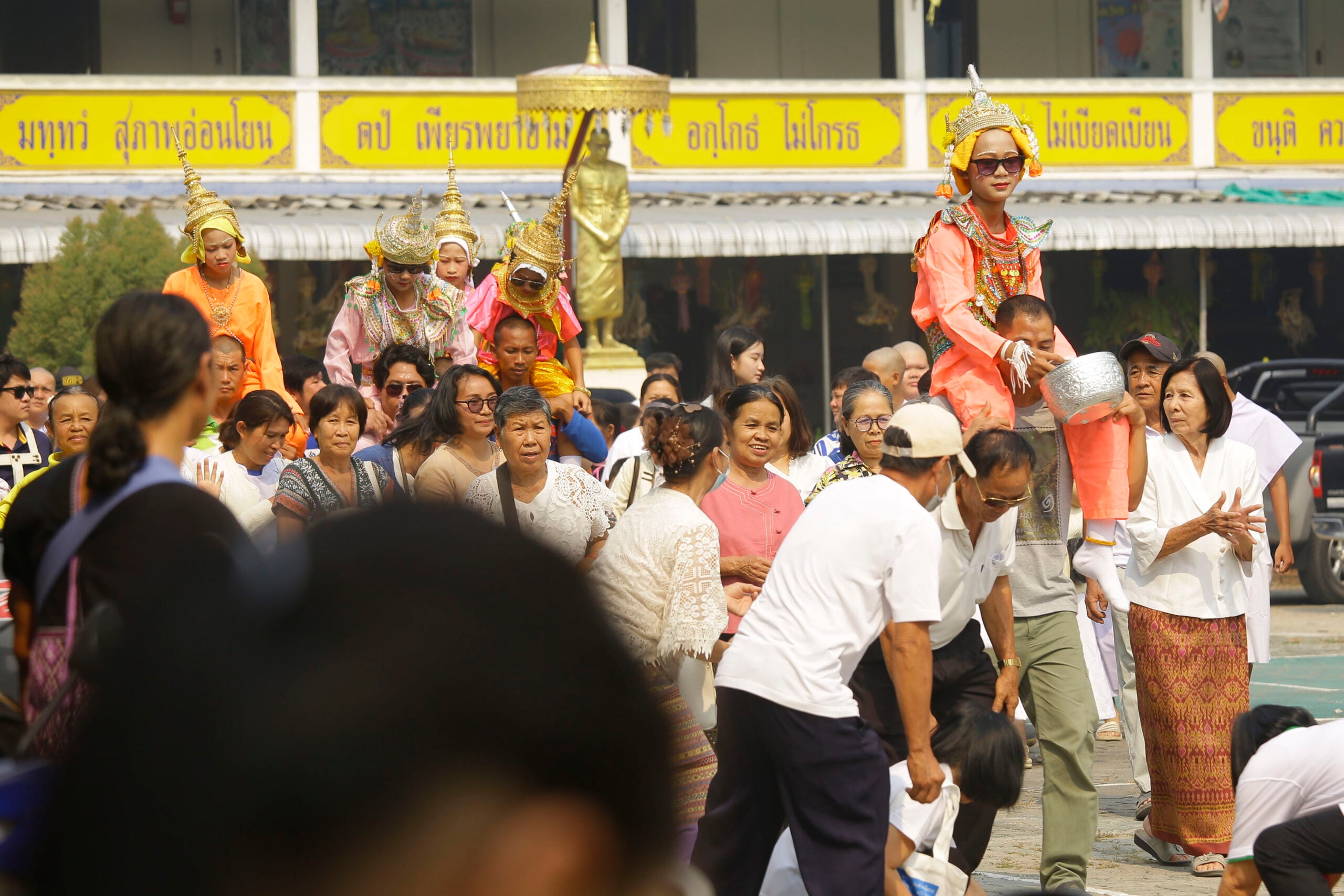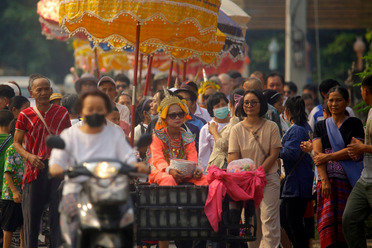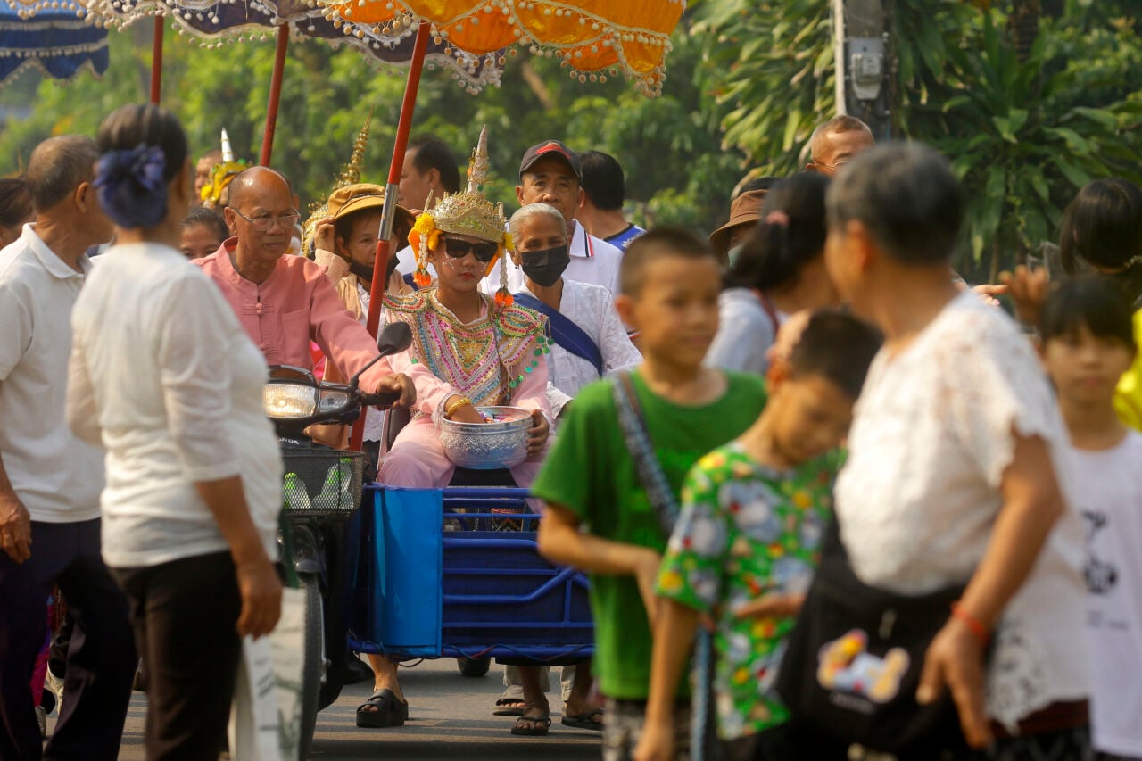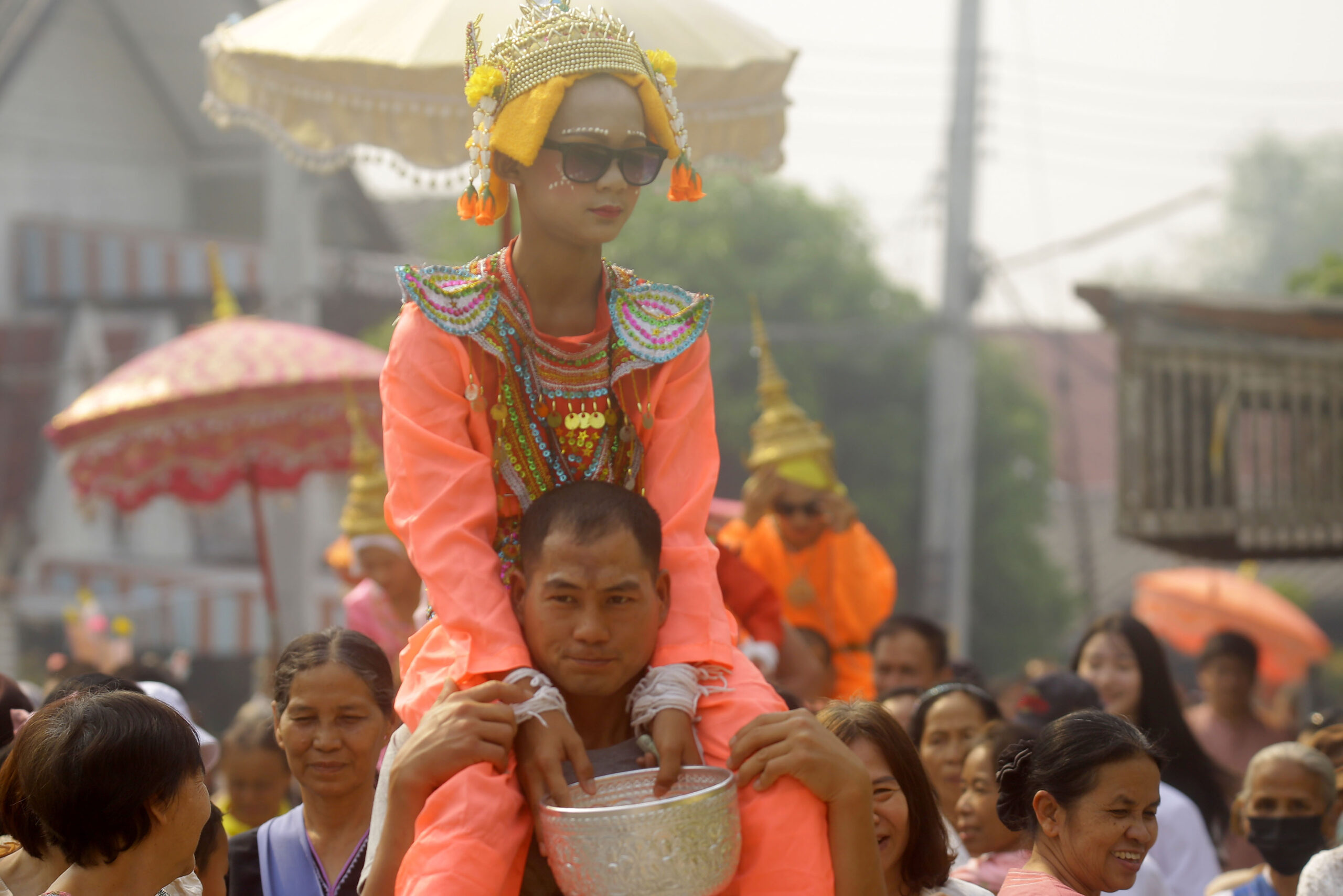 “บางปีก็ได้รับผ้าไตรพระราชทาน” พระครูปริยัติรังสรรค์ กล่าว และว่า สาเหตุของการแต่งหน้าตาก่อนจะบวชเป็นสามเณร ทางล้านนาเรียกว่า “ลูกแก้ว” ส่วนทาง จ.แม่ฮ่องสอน เรียกว่า “ปอยส่างลอง” ส่วนการแต่งกายเป็นเทวดาก็เหมือนกับตอนที่เจ้าชายสิทธัตถะเสด็จออกบวช ได้แต่งกายเต็มรูปแบบหรือเต็มยศออกบวช ก่อนจะเปลี่ยนมาใส่ผ้าขาวหรือผ้านาค และก็กลายเป็นประเพณีไปในที่สุด ขณะที่การแห่ก็เพื่อประชาสัมพันธ์ กระตุ้นให้เด็กๆ ได้เห็นพิธีกรรมนี้ และจะได้พากันมาบวช