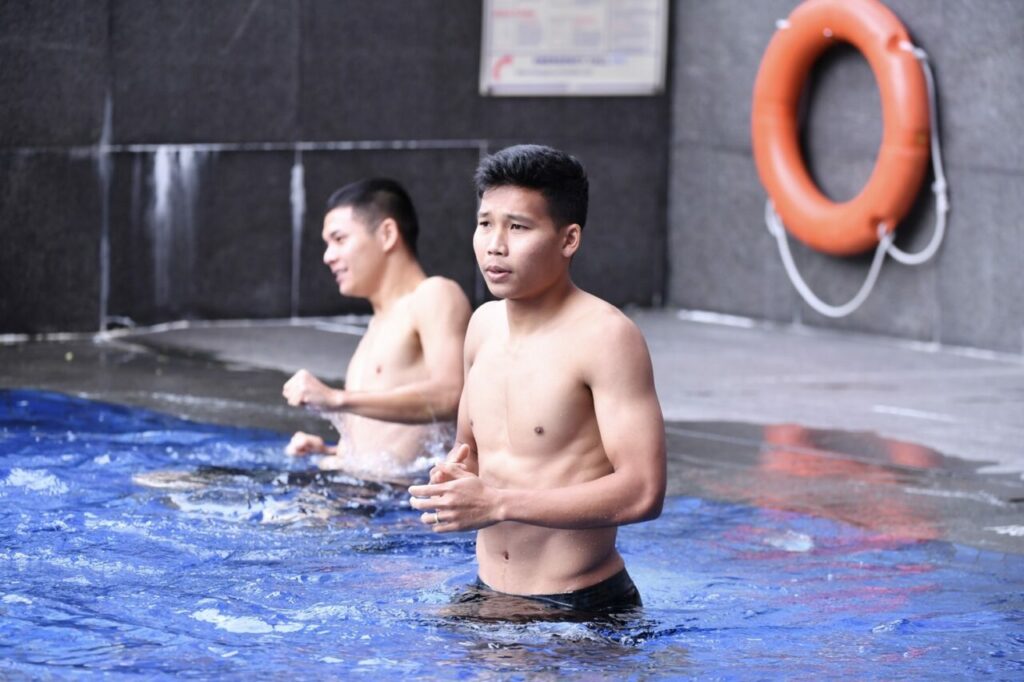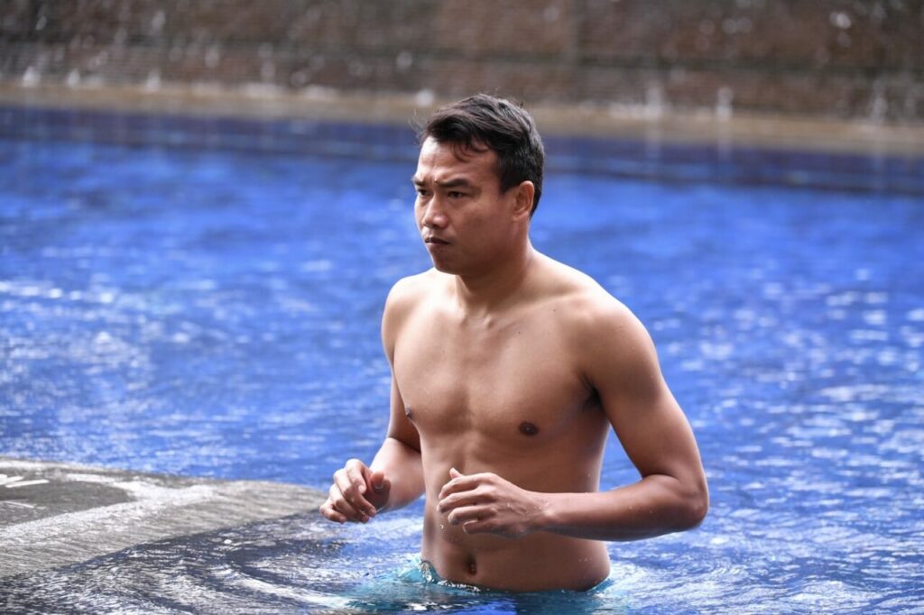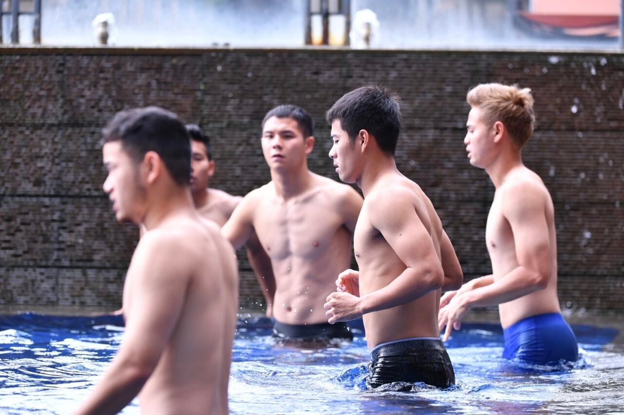 เมื่อช่วงบ่าย 15 ธ.ค.64 “ช้างศึก” ทีมฟุตบอลทีมชาติไทย ลงสระว่ายน้ำ ภายในโรงแรม แกรนด์ เมอร์เคียว เพื่อฟื้นฟูร่างกาย และเตรียมพร้อมสำหรับการแข่งขันฟุตบอลชิงแชมป์อาเซียน 2020 รอบแบ่งกลุ่ม นัดต่อไป ที่จะพบกับ สิงคโปร์ ในวันที่ 18 ธ.ค.64 เวลาไทย 19.30 น.