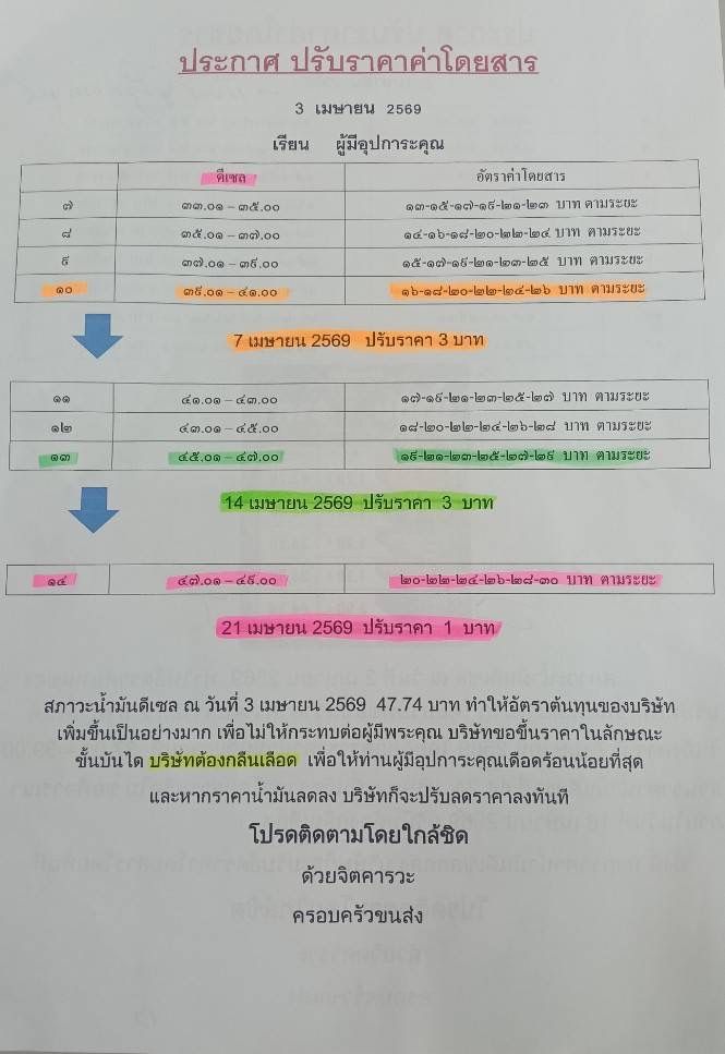วันที่ 14 เม.ย. ปรับขึ้น 3 บาท เป็น 20-30 บาท