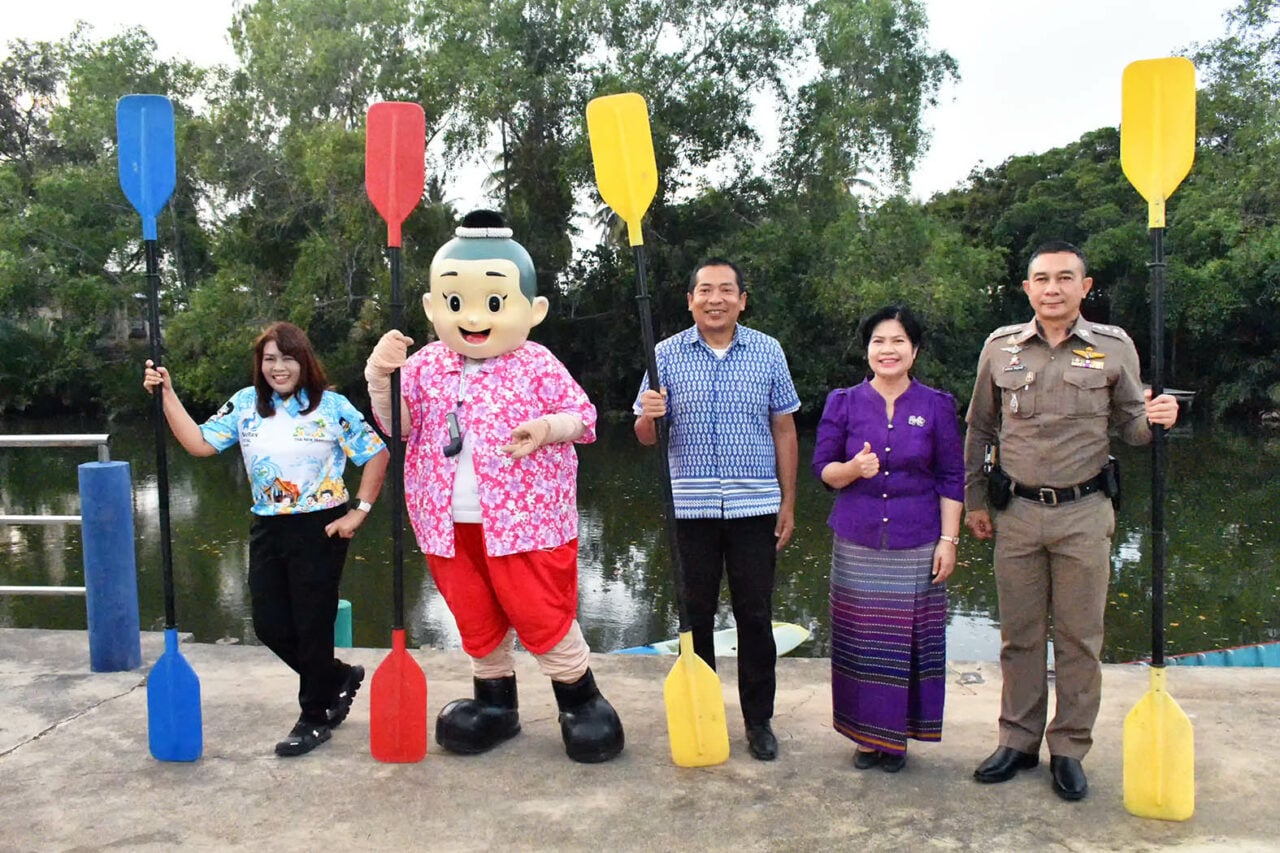 เมื่อวันที่ 2 เม.ย. ที่บริเวณท่าน้ำวัดนาห้วย อ.ปราณบุรี จ.ประจวบฯ นายราม สิงหโศภิษฐ์ นายอำเภอปราณบุรี, นางอุบลวรรณ คงสว่าง ผจก.สำนักงานเครือข่ายองค์กรงดเหล้าภาคตะวันตก สำนักงานกองทุนสนับสนุนการสร้างเสริมสุขภาพ (สสส.), นายสถาพร ก้อนเมฆ นายก อบต.ปราณบุรี, นายธเนศพล วงศ์สวาท ผญบ.หมู่ 3 บ้านนาห้วย, นายบุญมี สำมณี ประธานสภาวัฒธรรมอำเภอปราณบุรี, พ.ต.อ.หงส์พรหม วิศิษฐ์ชนะชัย ผกก.สภ.ปราณบุรี และพระครูปลัดวชิรานันท์ วชิราวุโธ เจ้าคณะตำบลปราณบุรี เจ้าอาวาสวัดนาห้วย ร่วมแถลงข่าวการจัดงานประเพณี “มหาสงกรานต์ล่องนที แห่พระวารีเข้าเมือง” สงกรานต์วิถีไทย สนุก ปลอดภัย ไร้แอลกอฮอล์ ท่ามกลางแขกผู้มีเกียรติจำนวนมากสวมเสื้อลายดอกสีสันสดใสร่วมรับฟัง