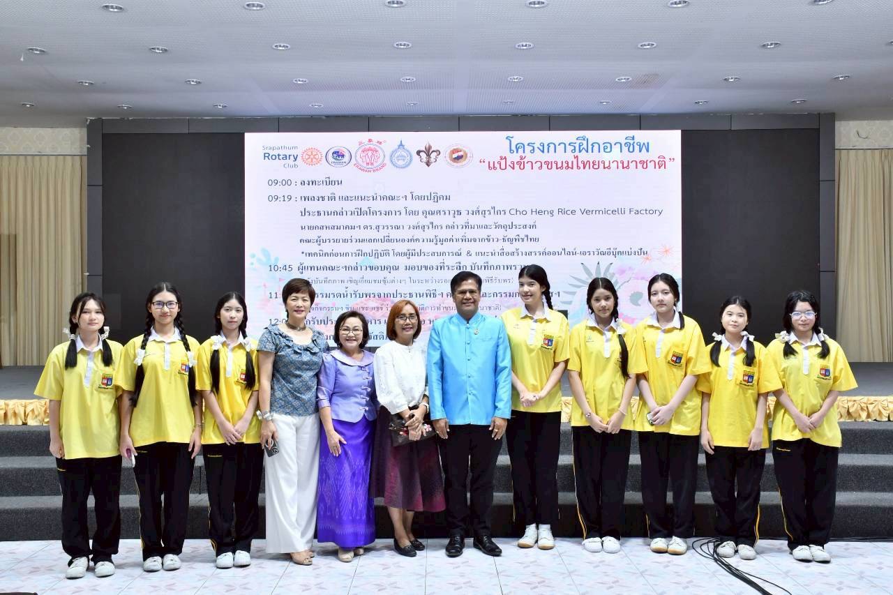คุณศราวุธ วงศ์สุรไกร ประธาน บริษัท โรงเส้นหมี่ชอเฮง จำกัด เดินหน้าจัดต่อเนื่อง โครงการฝึกอาชีพแป้งข้าวขนมไทยนานาชาติแก่ชุมชน เยาวชน ครูเกษียณ จำนวน 120 คน ร่วมกับภาคีเครือข่ายจิตอาสา เพื่อถวายเป็นพระราชกุศล สมเด็จพระกนิษฐาธิราชเจ้า กรมสมเด็จพระเทพรัตนราชสุดาฯ สยามบรมราชกุมารี ทรงมีพระชนมายุครบ 71 พรรษา ในวันที่ 2 เม.ย.ที่ผ่านมา ณ ที่ทำการบริษัท โรงเส้นหมี่ชอเฮง จำกัด ถนนเพชรเกษม ต.ยายชา อ.สามพราน นครปฐม