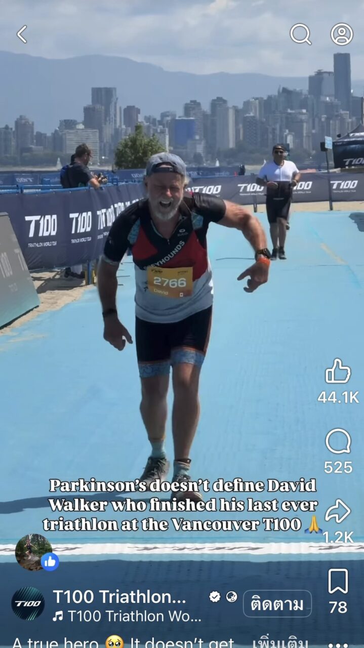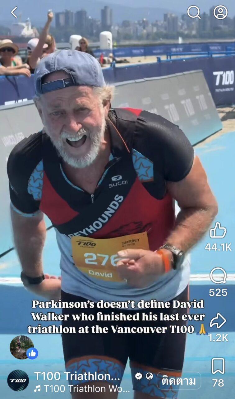 นับเป็นเรื่องที่น่าทึ่ง กับการลงไตรกีฬา ด้วยวัยเกิน 70 ปี ขณะที่โรคพาร์กินสันยังส่งผลต่อการเคลื่อนไหว การทรงตัว และการประสานงานของร่างกาย