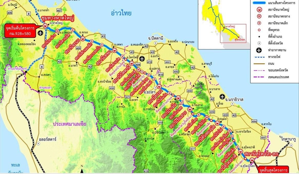 โครงการก่อสร้างรถไฟทางคู่ ช่วงชุมทางหาดใหญ่-สุไหงโก-ลก ระยะทาง 215 กม. มี 26 สถานี 8 ป้ายหยุดรถไฟ วงเงินประมาณ 3.4 หมื่นล้านบาท มีจุดเริ่มต้นที่ สถานีรถไฟชุมทางหาดใหญ่ กม.928+580 สิ้นสุดที่สถานีสุไหงโก-ลก กม.1142+990 สะพานรถไฟข้ามแม่น้ำโก-ลก บริเวณพรมแดนไทย-มาเลเซีย