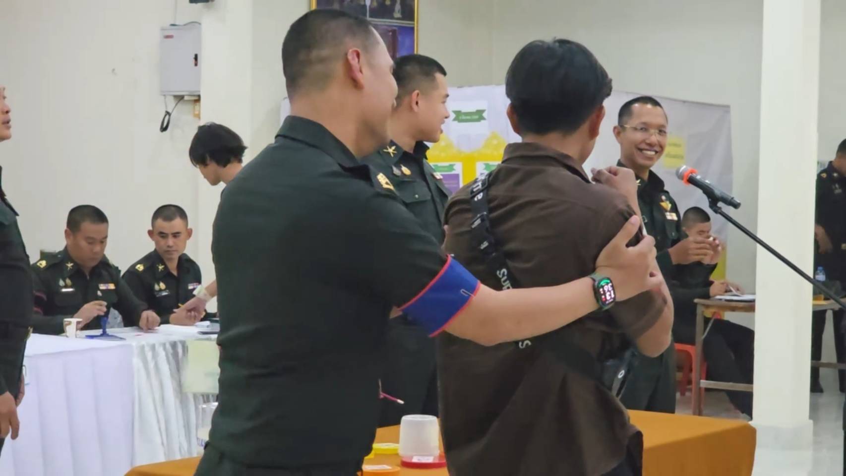 เมื่อวันที่ 4 เม.ย. 2569 ผู้สื่อข่าวรายงาน บรรยากาศการตรวจเลือกทหาร ที่ ศาลาประชาคมที่ว่าการอำเภอทัพทัน จ.อุทัยธานี เมื่อหนุ่มๆ ต้องมาลุ้นจับใบดำใบแดงจากผู้ผ่านการคัดเลือกช่วงเช้า 119 คน โดยต้องการทหาร 33 นาย