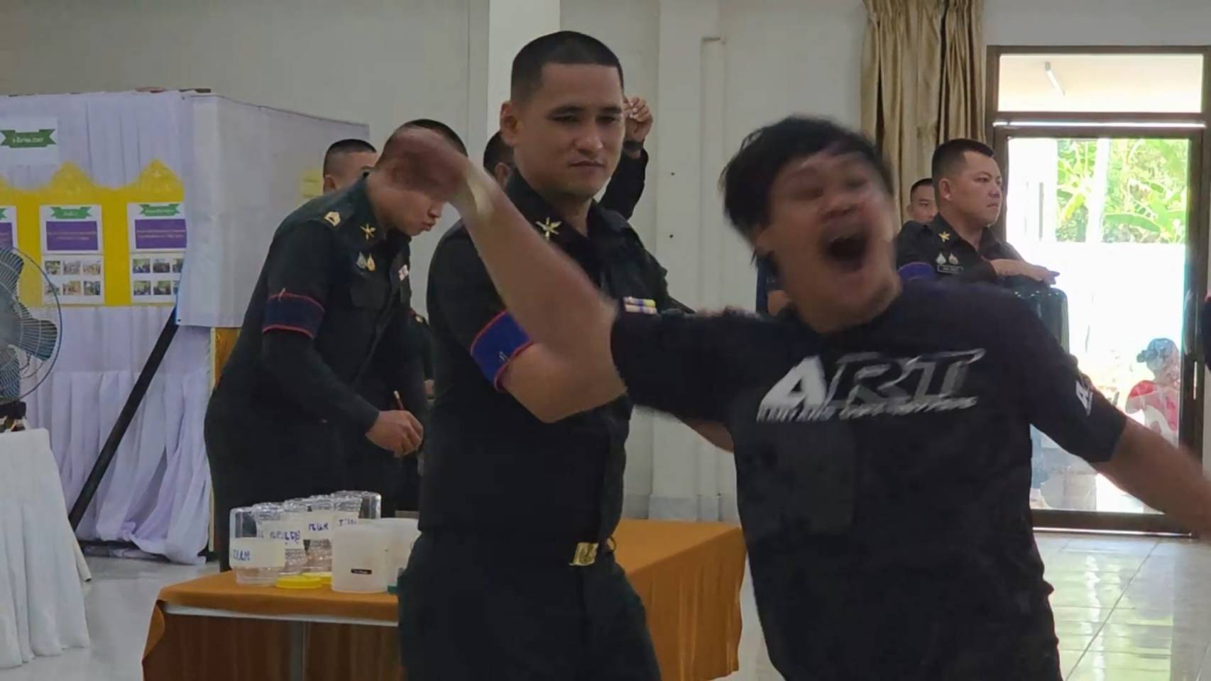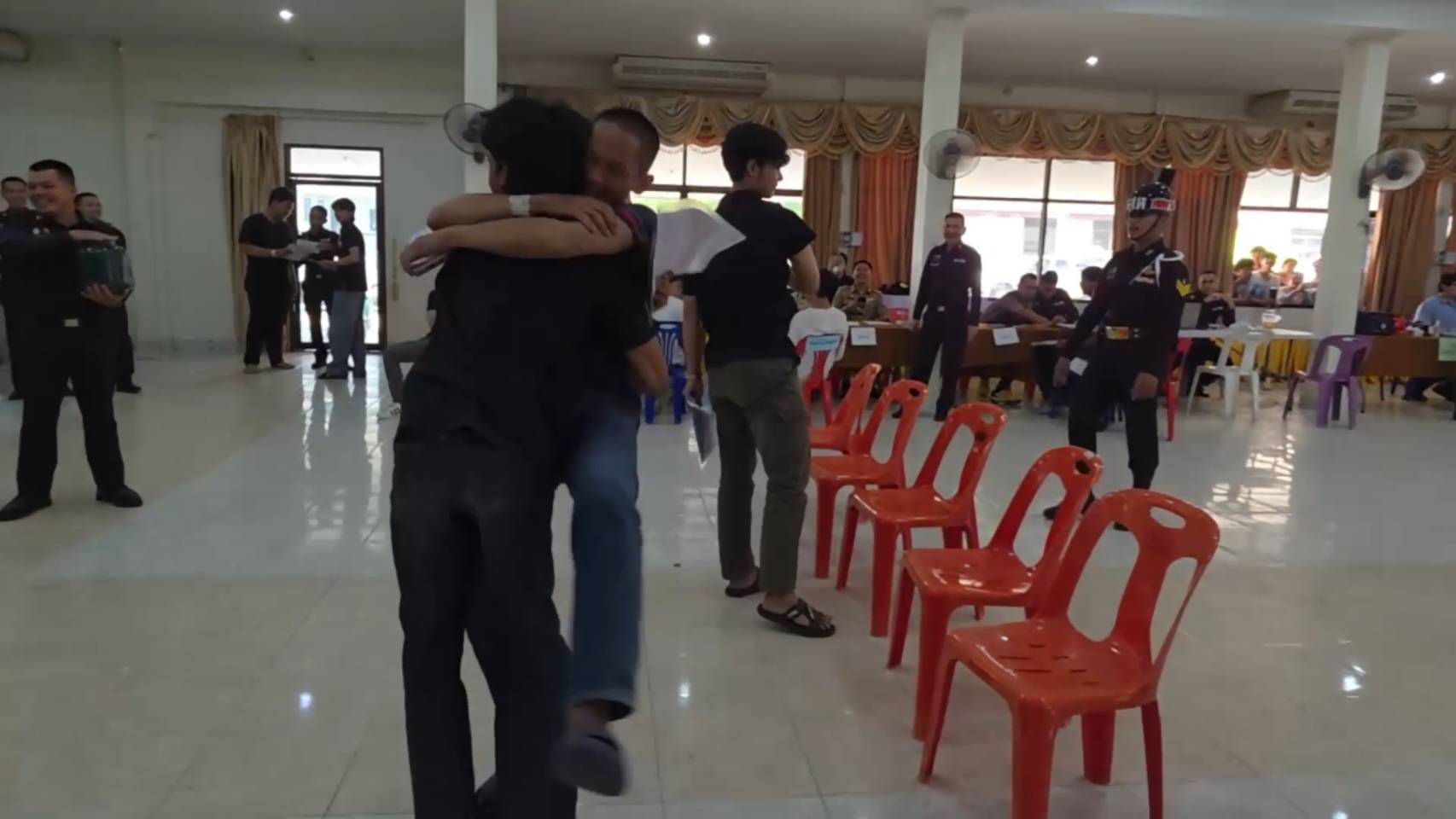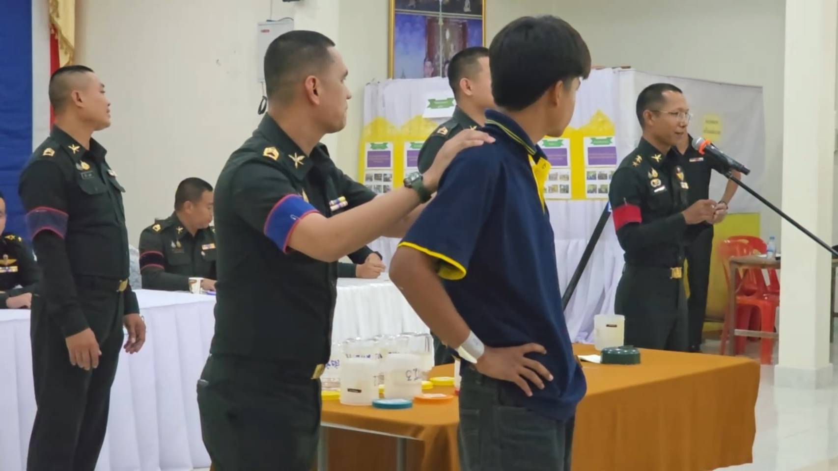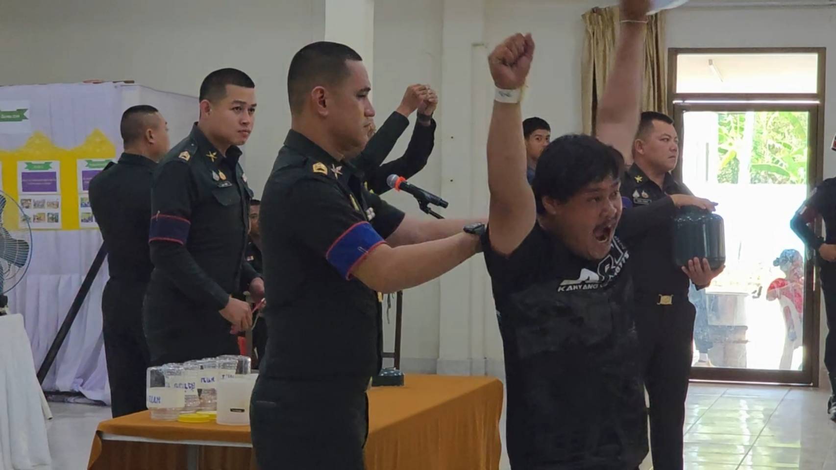 ขณะหนุ่ม ๆ ที่รอจับใบดำใบแดง ขาสั่นกันเป็นแถว ด้านพระภิกษุ 2 รูปที่มาร่วมจับด้วย รูปแรกจับได้ใบดำ คนดูเฮลั่นได้บวชต่อ แต่พออีกรูปจับได้ใบแดง ถึงกับหน้าถอดสี เรียกเสียงฮือฮาไปทั้งห้อง