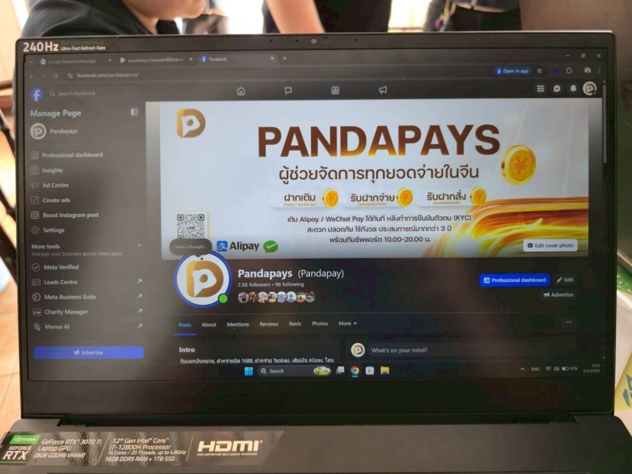 สอบผู้ต้องหาให้การรับสารภาพสอดคล้องกันว่า ได้เปิดให้บริการแลกเงินหยวนผ่านช่องทางสื่อสังคมออนไลน์ ชื่อ PANDAPAYS ตั้งแต่ปลายปี 2568 โดยรู้จักกับชาวจีนจึงได้เปิดบัญชี Alipay เพื่อใช้สำหรับโอนเงินหยวนให้กับลูกค้าที่ติดต่อเข้ามาขอแลกเงิน ซึ่งจะมีการบวกค่าเงินสูงจากอัตราแลกเปลี่ยนปกติเพื่อเป็นกำไร โดยจะได้กำไรมากน้อยขึ้นอยู่กับอัตราแลกเปลี่ยนในช่วงนั้นๆ ฐานลูกค้าส่วนใหญ่เป็นผู้ประกอบธุรกิจ เกี่ยวกับการนำเข้าสินค้าจากประเทศจีนทั้งในนามนิติบุคคลและบุคคลธรรมดา จึงนำส่งพนักงานสอบสวน กก.5 บก.ปอศ. ดำเนินคดีตามกฎหมาย นอกจากนี้ยังพบว่ากลุ่มผู้ต้องหายังมีพฤติการณ์รับจ่ายเงินหรือรับชำระเงินแทน ซึ่งอาจเข้าข่ายเป็นความผิดตาม พ.ร.บ.ระบบการชำระเงิน พ.ศ.2560 ซึ่งจะทำการสอบสวนขยายผลต่อไป