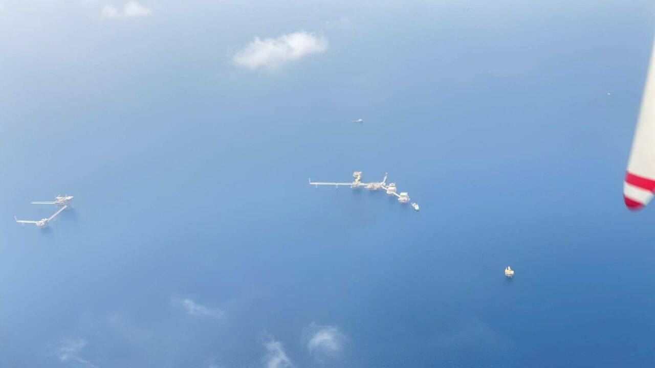 นอกจากนี้ กองทัพเรือได้สั่งการให้จัดอากาศยานขึ้นทำการบินลาดตระเวนตรวจสอบในพื้นที่ที่ปรากฏเป็นประเด็น เพื่อยืนยันข้อเท็จจริงในเชิงประจักษ์อีกครั้ง โดยเมื่อวันนี้ (5 เมษายน 2569) เวลา 12:12-14:51 อากาศยานของ ทรภ.2 ได้ขึ้นบินลาดตระเวนบริเวณกลุ่มแท่นผลิตฯ ตรวจพบเรือประมงจำนวน 23 ลำ ทำการประมงปกติในพื้นที่ และเรือสินค้า 8 ลำ เดินเรือตามเส้นทางปกติ ไม่มีการจอดเรือในลักษณะต้องสงสัย สรุปได้ว่าไม่พบการรวมกลุ่มของเรือจำนวนมากผิดปกติในพื้นที่ดังกล่าว หรือมีลักษณะเป็นเรือบรรทุกน้ำมันนับร้อยลำตามที่ปรากฏในข่าว