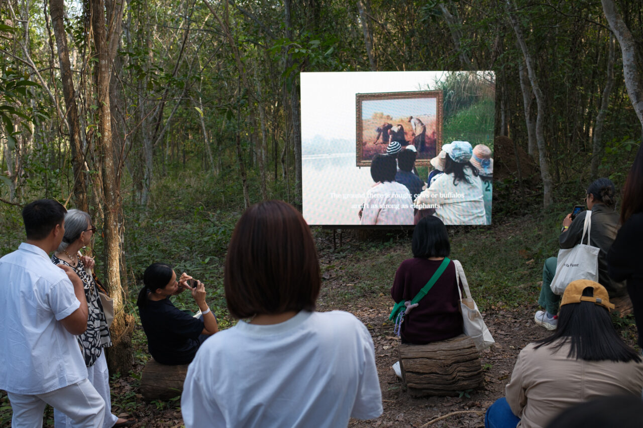 หนึ่งในไฮไลต์ของนิทรรศการที่ได้รับความสนใจอย่างมากคือ “The Pulse of Life” ผลงานของกลุ่มศิลปินระดับโลก Scenocosme ที่ร่วมกันสร้างสรรค์บทสนทนาระหว่างศิลปะ ธรรมชาติ และมนุษย์ ผ่านการชวนผู้ชมแนบหู สัมผัส หรือโอบกอดต้นไม้ ราวกับกำลังสำรวจร่างกายของเราผ่านกระจกสะท้อนจากธรรมชาติ