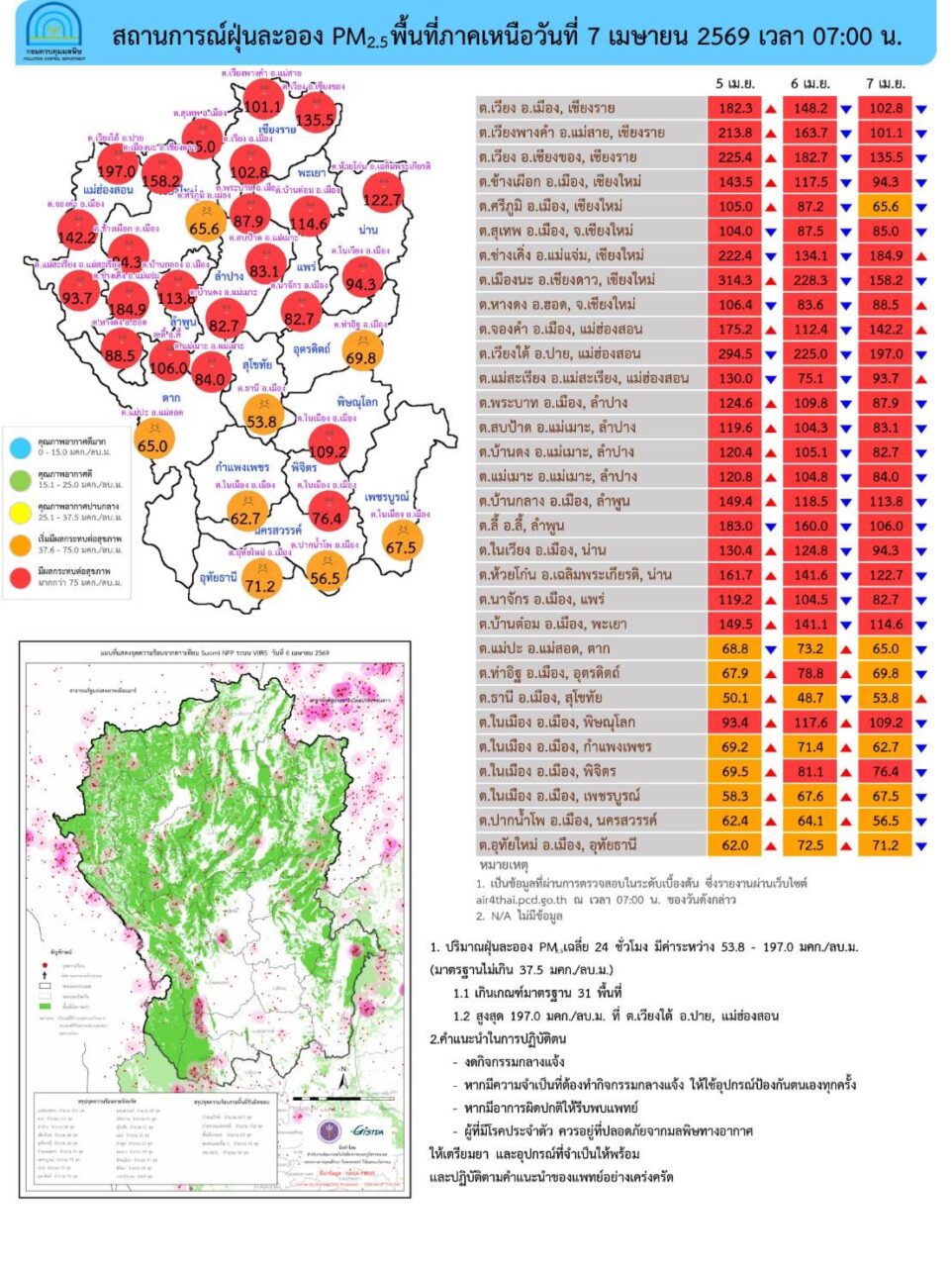 เมื่อวันที่ 7 เม.ย. ศูนย์สื่อสารการแก้ไขปัญหามลพิษทางอากาศ รายงานการติดตามตรวจสอบคุณภาพอากาศ