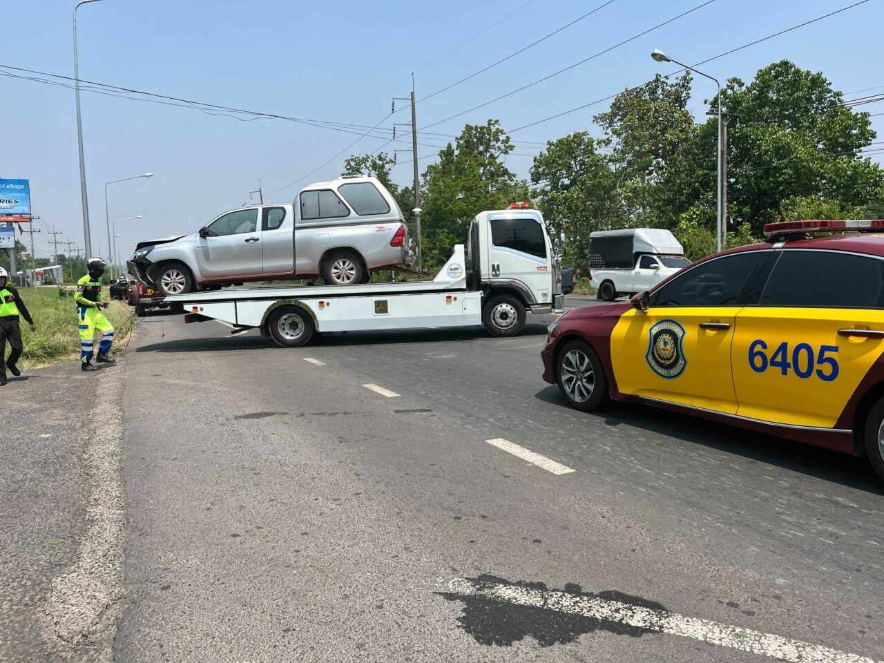 เมื่อวันที่ 7 เม.ย. พล.ต.ต.พรศักดิ์ เลารุจิราลัย ผบก.ทล. สั่งการ พ.ต.อ.วิษณุ คำโนนม่วง ผกก.6 บก.ทล. พ.ต.ต.สมโภชน์ บุญชะยา สว.ส.ทล.4 กก.6 บก.ทล. จับกุม นายสุวรรณ (สงวนนามสกุล) อายุ 17 ปี สัญชาติไทย และ ท้าวชัยกร (สงวนนามสกุล) อายุ 18 ปี สัญชาติลาว พร้อมของกลาง รถยนต์กระบะ Toyota Hilux Revo สีเทา 1 คัน โดยจับกุมตัวได้บริเวณริมถนน ทล.24 กม.384 ต.เมืองเดช อ.เดชอุดม จ.อุบลราชธานี