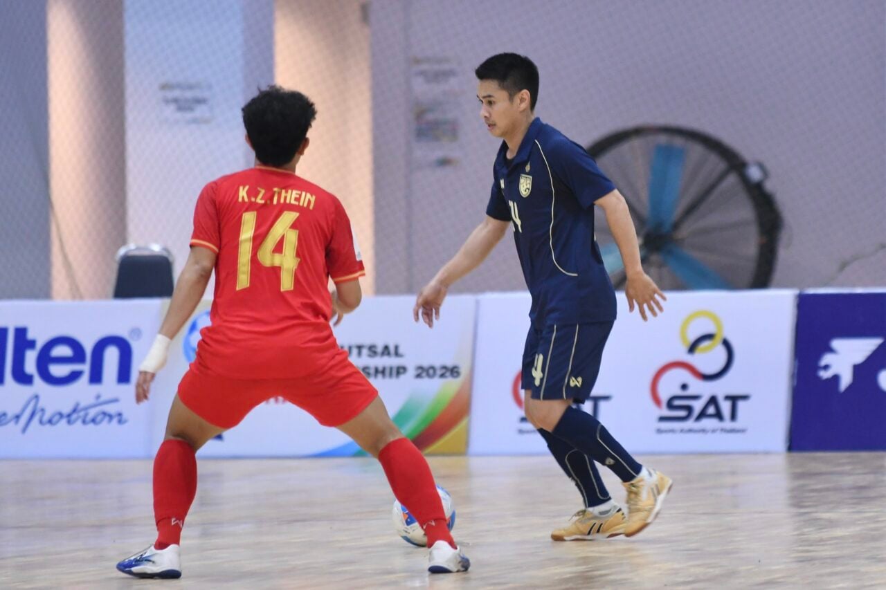 ทีมฟุตซอลทีมชาติไทย ชนะ เมียนมา 2-0 ในฟุตซอลชิงแชมป์อาเซียน 2026 กลุ่ม A นัด 2 ที่ยิมเนเซียม องค์การบริหารส่วนจังหวัดนนทบุรี วันที่ 7 เม.ย.69