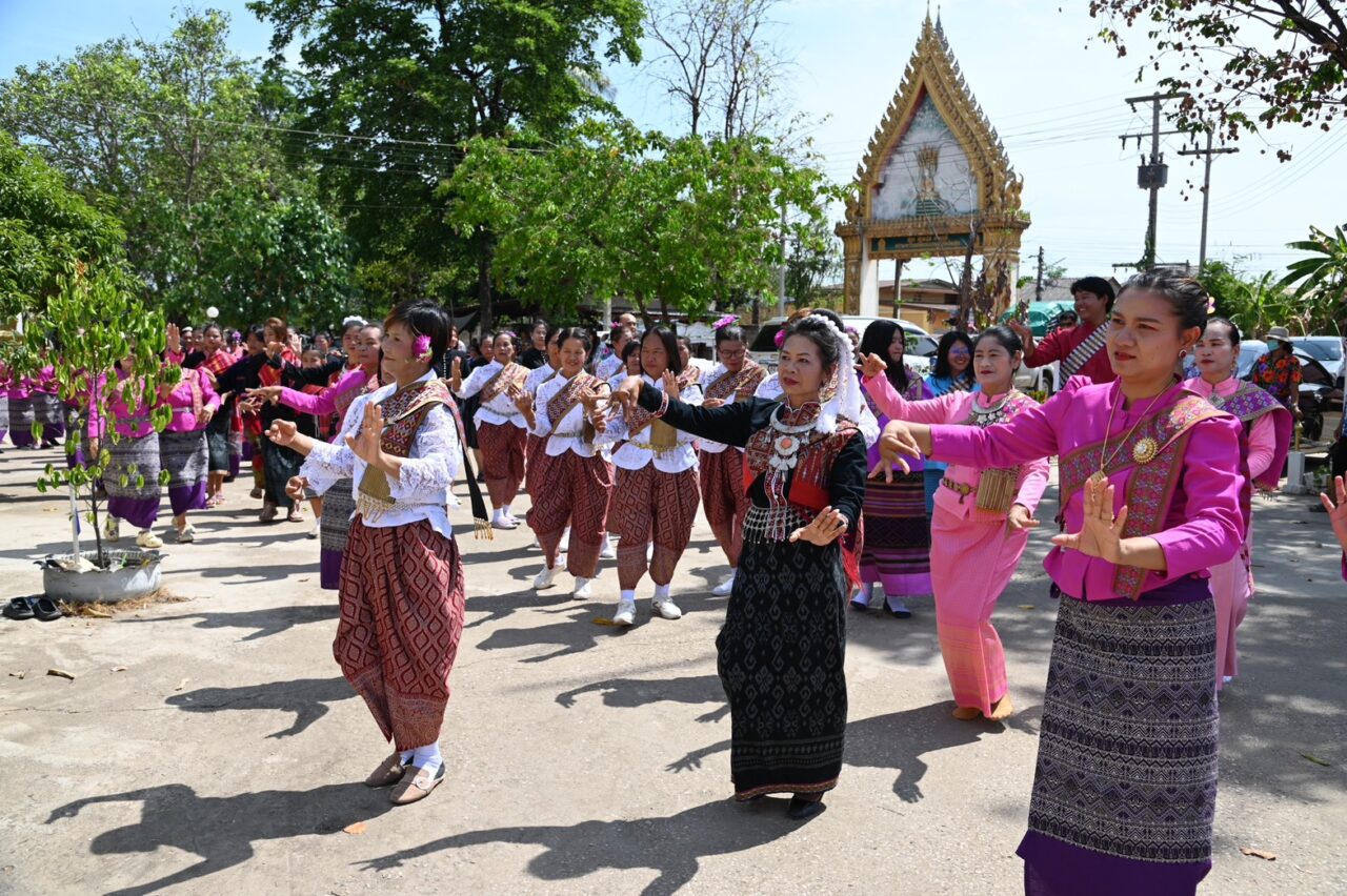 จากนั้นจะเป็นการรำพุทธบูชาถวายหลวงพ่อกลับ หลวงพ่อขำ ซึ่งองค์กรปกครองส่วนท้องถิ่นทุกแห่งในอำเภอลานกระบือจัดนางรำเข้าร่วมพิธี หลังจากถวายภัตตาหารเพลแด่พระสงฆ์ เวลา 11.30 น.จะนิมนต์พระสงฆ์นั่งบนเกวียนพร้อมอัญเชิญพระพุทธรูปและรูปหล่อหลวงพ่อกลับ หลวงพ่อขำ พระเกจิชื่อดัง ขึ้นบนเกวียน ซึ่งจะใช้เกวียนโบราณมาตกแต่งให้สวยงาม จากนั้นก็จะปล่อยขวนเกวียน แห่ไปตามถนนสายกำแพงเพชร-พิษณุโลก ช่วงตัดผ่านอำเภอลานกระบือ เพื่อให้ชาวบ้านได้สรงน้ำพระและรับน้ำพระพุทธมนต์ ตลอดเส้นทางที่ขวนเกวียนแห่ผ่าน ซึ่งมาชาวบ้านที่ทราบข่าวทั้งในเขตและนอกเขตอำเภอลานกระบือ มาจับจองสองข้างทางเป็นจำนวนมากทุกปี ทำให้บรรยากาศเป็นไปด้วยความคึกคัก และจะกลับเข้าวัดเพื่อสงฆ์น้ำพระสงฆ์ ไม่เกินเวลา 17.00 น.