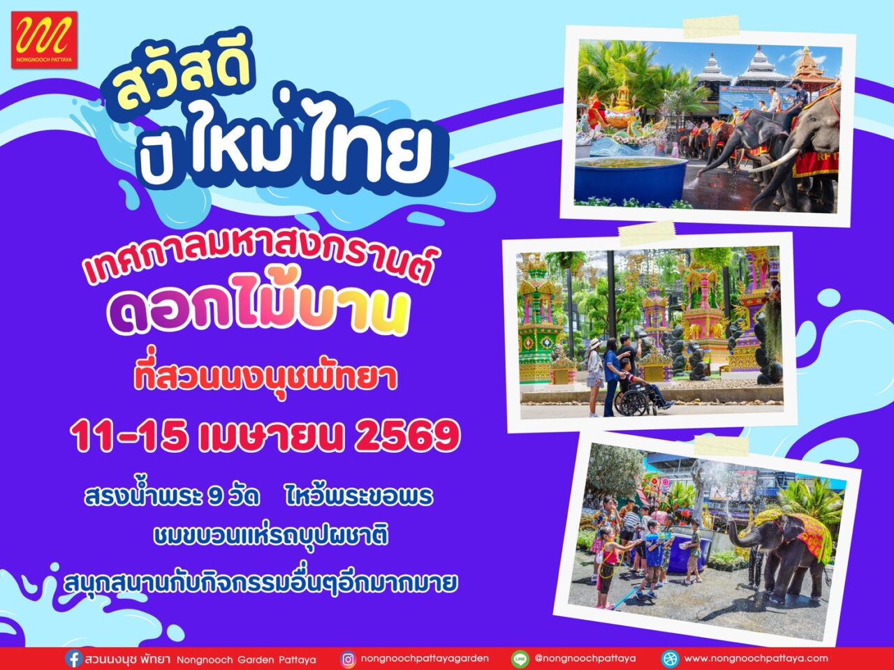 ผู้สื่อข่าวรายงานว่า สวนนงนุชพัทยา นำโดยนายกัมพล ตันสัจจา ประธานสวนนงนุชพัทยา ประกาศความพร้อมในการจัดงาน “เทศกาลมหาสงกรานต์ดอกไม้บานที่สวนนงนุชพัทยา” ต้อนรับปีใหม่ไทย ในช่วงระหว่างวันที่ 11–15 เมษายน 2569 เพื่อเปิดพื้นที่ให้นักท่องเที่ยวได้ร่วมสืบสานวัฒนธรรมไทย พร้อมทำบุญกราบไหว้ขอพรเพื่อความเป็นสิริมงคลแก่ชีวิต