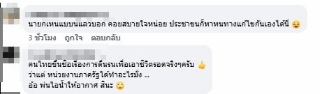 อย่างไรก็ตาม เมื่อเรื่องราวดังกล่าวถูกเผยแพร่ออกไป ต่างมีชาวเน็ตเข้ามาแสดงความคิดเห็นกันเป็นจำนวนมาก โดยชาวเน็ตส่วนใหญ่บอกว่า “นายกฯ เห็นแบบนี้แล้วบอก ค่อยสบายใจหน่อย ประชาขนก็หาหนทางแก้ไขกันเองได้นี่, คนไทยขึ้นชื่อเรื่องการดิ้นรน เพื่อเอาชีวิตรอดจริงๆ ครับ ว่าแต่หน่วยงานภาครัฐได้ทำอะไร พ่นไอน้ำให้อากาศสินะ, ในช่วงวิกฤติแต่ละครั้ง ทำให้เห็นว่ารัฐบาลแก้ไขอะไรไม่ได้เลย” อีกด้วย..