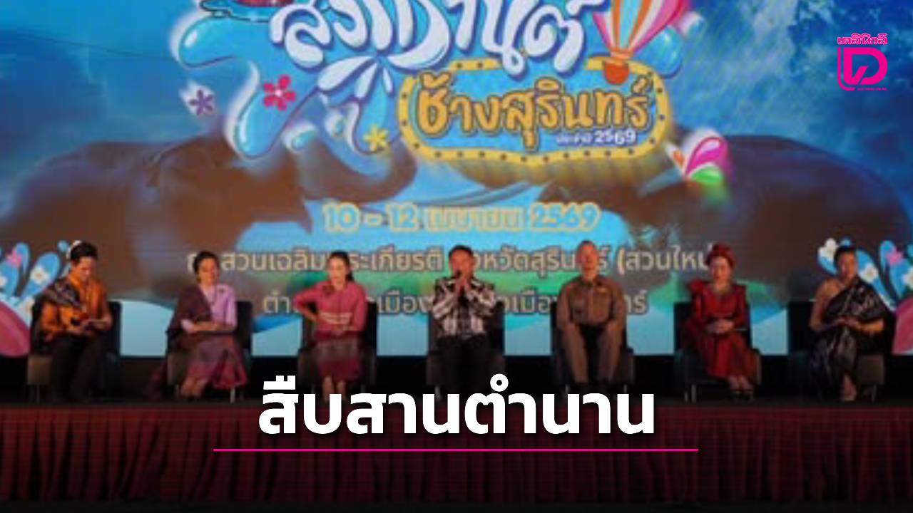 ณ บริเวณสวนสาธารณเฉลิมพระเกียรติฯ 80 พรรษา (สวนใหม่) อ.เมืองสุรินทร์ จ.สุรินทร์ นายจำเริญ แหวนเพ็ชร ผวจ.สุรินทร์ พร้อมด้วยนางธัญพร มุ่งเจริญพร นายก อบจ.สุรินทร์ น.ส. สุปราณี มหาพัฒนไทย หัวหน้าสำนักงานจังหวัดสุรินทร์ พ.ต.อ.ยศวัจน์ งามสง่า รองผบก.ภ.จังหวัดสุรินทร์ และนางลาวัลย์ งามชื่น ประธานสภาวัฒนธรรม จ.สุรินทร์ ร่วมแถลงข่าวการแสดงแสง สี เสียง สืบสานตำนานคนเลี้ยงช้างสุรินทร์ ในงานสืบสานพระราชเสาวนีย์ วิถีช้างคืนถิ่น “มหาสงกรานต์ช้างสุรินทร์ 2569 เนื่องในวันช้างไทย” ที่จะจัดขึ้นในระหว่างวันที่ 10-12 เม.ย.2569 ณ สวนสาธารณเฉลิมพระเกียรติฯ 80 พรรษา (สวนใหม่) อ.เมืองสุรินทร์ จ.สุรินทร์ เพื่อสร้างการรับรู้และเผยแพร่ประชาสัมพันธ์ไปยังสื่อมวลชนแขนงต่างๆ กระตุ้นเศรษฐกิจของ จ.สุรินทร์ ตลอดจนอนุรักษ์ศิลปวัฒนธรรมสืบสานขนบธรรมเนียมประเพณีอันดีงามของไทยให้คงอยู่ โดยมีหัวหน้าส่วนราชการระดับจังหวัด อำเภอ ผู้นำองค์กรปกครองส่วนท้องถิ่น สื่อมวลชน และประชาชนร่วมงาน