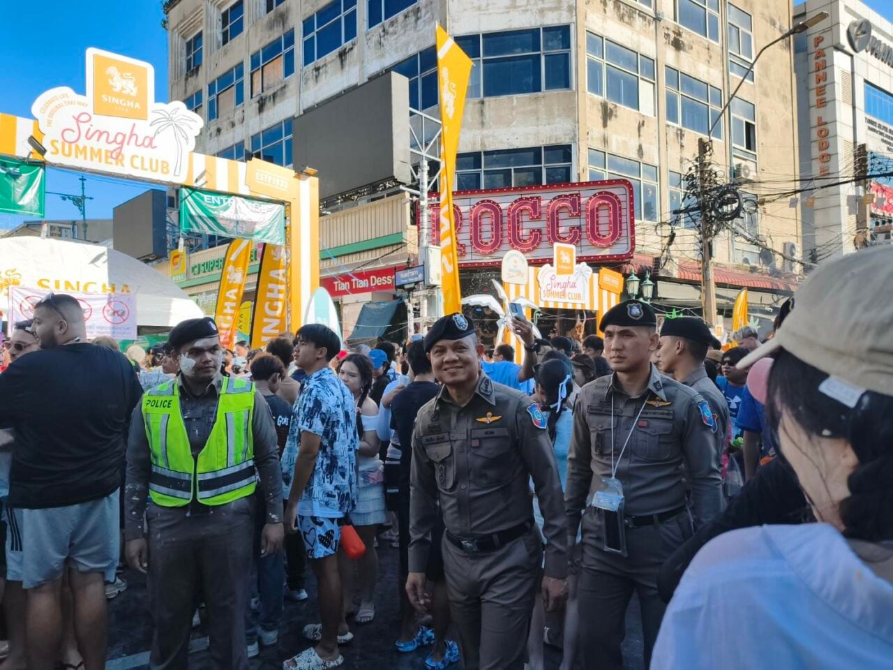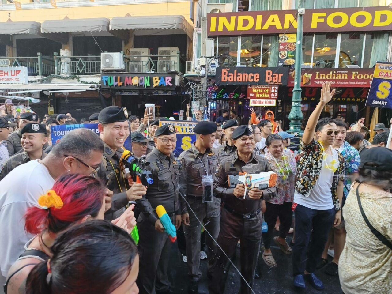 เมื่อเวลา 15.00 น. วันที่ 13 เม.ย. 69 พล.ต.ท.ศักย์ศิรา เผือกอ่ำ ผู้บัญชาการตำรวจท่องเที่ยว ลงพื้นที่ตรวจเยี่ยมและกำกับดูแลการปฏิบัติภารกิจด้านความปลอดภัยและอำนวยความสะดวกแก่นักท่องเที่ยว ในช่วงเทศกาลสงกรานต์ ประจำปี 2569 ณ บริเวณถนนสีลม และถนนข้าวสาร กรุงเทพมหานคร ซึ่งเป็นพื้นที่จัดกิจกรรมหลักที่มีนักท่องเที่ยวทั้งชาวไทยและชาวต่างชาติเป็นจำนวนมาก