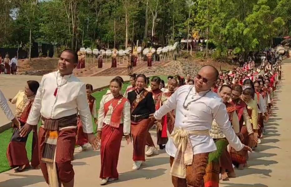 ทั้งนี้ บรรยากาศเป็นไปอย่างคึกคัก และตระการตา มีเหล่านางรำกว่า 200 ชีวิต สวมชุดพื้นเมืองอย่างงดงามร่วมรำบวงสรวงถวายอย่างพร้อมเพรียง ท่ามกลางสายตาของข้าราชการ ญาติพี่น้องของเหล่าวีรชน และประชาชนจำนวนมาก