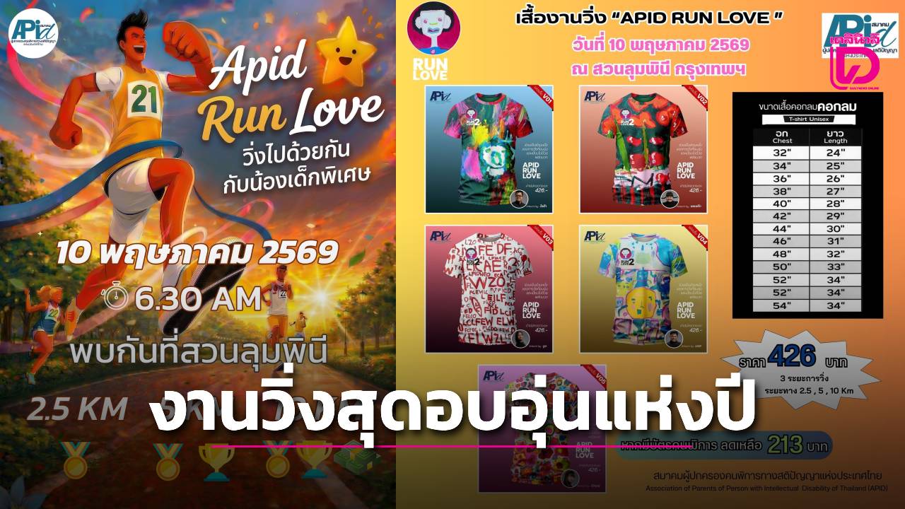 งานวิ่งสุดอบอุ่นแห่งปี ที่จะพาคุณไปสัมผัสรอยยิ้มและพลังบวกจากน้องๆ เด็กพิเศษ กับ “APID Run Love วิ่งไปด้วยกันกับน้องเด็กพิเศษ” ซึ่งจะจัดขึ้นในวันที่ 10 พฤษภาคม 2569 ณ สวนลุมพินี กรุงเทพมหานคร
