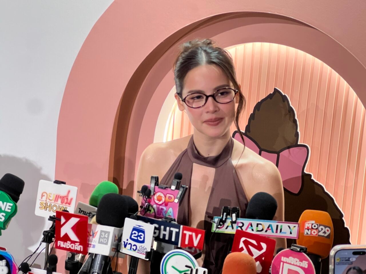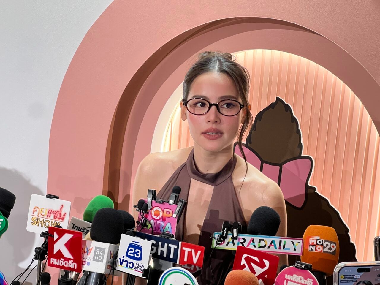 ญาญ่า เผยต่อว่า “ยังไม่เปลี่ยนคำเรียก สามีและภรรยานะคะ ยังไม่ได้เรียกนะคะเพราะเหลืออีก 2 งาน แต่ตามลำดับประเพณี คือเต็มตัวมากๆ แล้วค่ะ เป็นสะใภ้และเขยเต็มตัวแล้ว แต่ว่าตามประเพณีทางบ้านหนูมันยังไม่ได้สวมแหวนค่ะ ก็เหลืออีกแค่หนึ่งสเต็ปถึงจะพูดได้เต็ม ยังไม่ได้พูดคำนี้เลยค่ะ คำว่าสามี ตอนเช้าทักทายกัน (เอ่อ) กู๊ดมอร์นิ่งเบบี้ค่ะ แค่นี้ แหวนวงเดิม เพิ่งไปขัดมาค่ะ (โชว์แหวน) เดี๋ยวจะมีอีกวงแล้ว ของขวัญรับลูกสะใภ้จากแม่แก้ว ก็มีแสตมป์ตราโลโก้งานแต่งด้วย กำไลอยู่ในเซฟเรียบร้อยแล้วค่ะ สินสอดหนูไม่รู้เท่าไหร่ แม่พยักหน้า (ยิ้ม) สำหรับญ่าไม่ได้ขออะไร แล้วก็ไม่ได้ถามด้วยค่ะ ไม่รู้ แต่เดี๋ยวเราคงไปใส่สำหรับอนาคตด้วยกัน พี่แบรี่ทุ่มสุดตัวสำหรับงานนี้ รอฤกษ์เรื่องจดทะเบียนค่ะ ไม่ได้ตัดสินใจจะเปลี่ยนนางอะไรไหม กลางเดือนหน้าเริ่มบินไปนอร์เวย์ ใกล้คอมพลีทแล้วค่ะ อาจจะมีตะกุกตะกักนิดหน่อย แต่น่าจะสวยค่ะ”