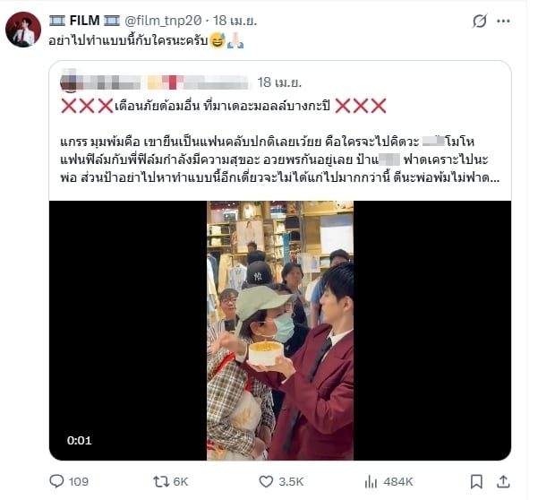 ‘ฟิล์ม ธนภัทร’ เจอหญิงปริศนาพุ่งใส่หวังหอมแก้ม ขอความกรุณาอย่าไปทำแบบนี้กับใคร!