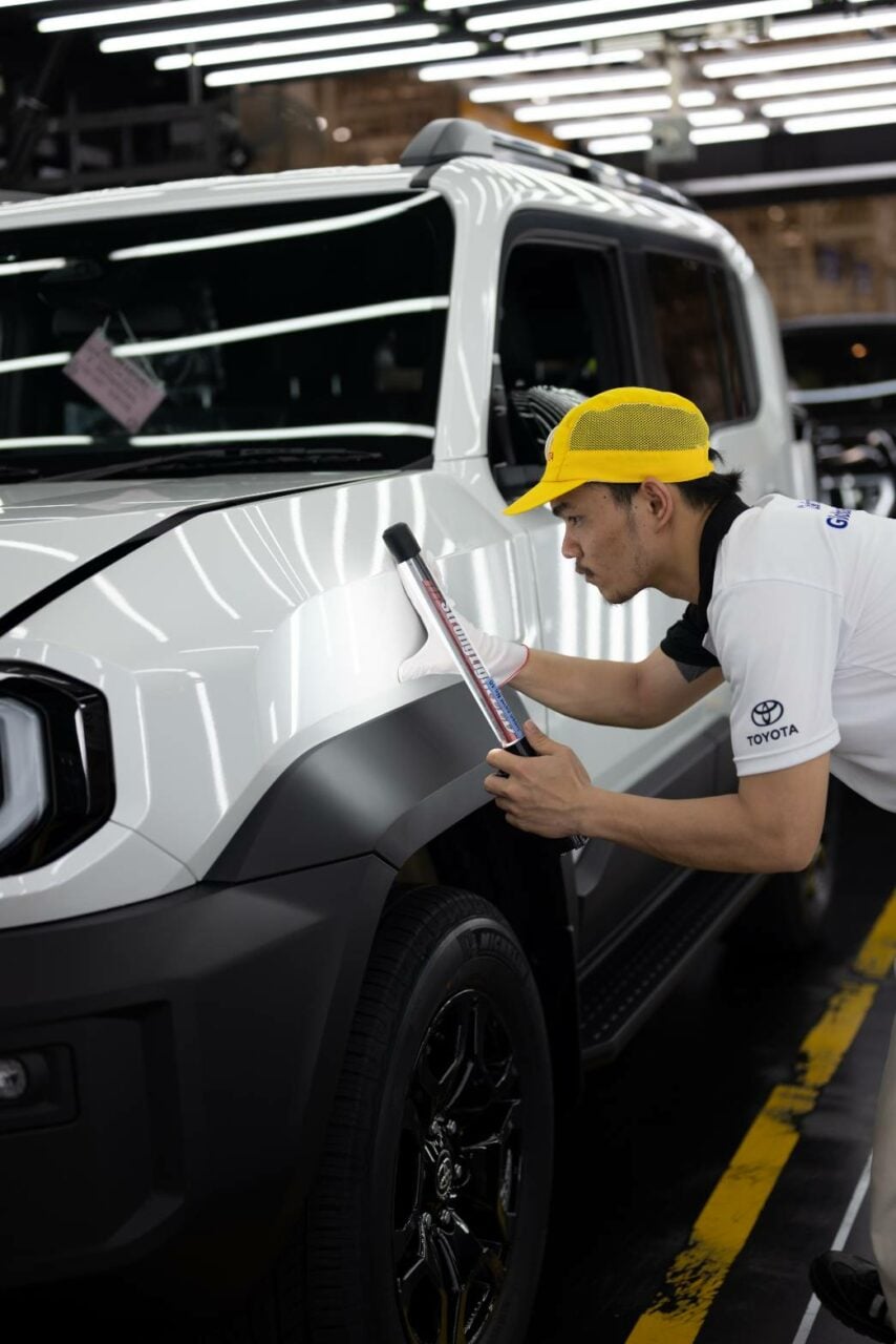 เบื้องหลังศักยภาพการผลิตอันทรงพลังคือหลักการ Toyota Production System (TPS) ที่ได้รับการยอมรับในระดับสากล โดยมีเสาหลักสำคัญคือการผลิตรถยนต์ตรงตามเวลาและปริมาณตามความต้องการของลูกค้า และการรับประกันคุณภาพที่เข้มงวดในทุกขั้นตอน โดยโตโยต้าและผู้ผลิตชิ้นส่วนต้องปฏิบัติร่วมกันอย่างไม่มีข้อยกเว้น ผ่านระบบตรวจสอบคุณภาพอัตโนมัติ POKAYOKE ที่ครอบคลุมทั้งกระบวนการ ตั้งแต่โรงปั๊มชิ้นส่วนที่ทำความเร็วได้สูงสุด 2,380 ชิ้นต่อชั่วโมง ไปจนถึงโรงเชื่อมตัวถัง โรงพ่นสี โรงฉีดขึ้นรูป โรงประกอบรถยนต์